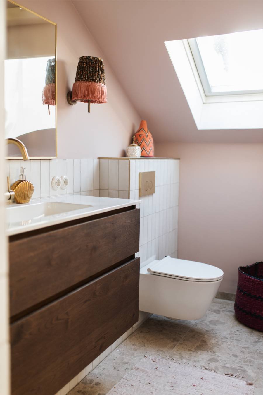 "Notre intérieur est unique et ne correspond à aucun style défini", confie Merel à propos de leur décoration, qu’elle décrit comme éclectique, colorée et conviviale. "Je tenais à ce que cette ambiance se reflète également dans la salle de bains." Pour trouver des idées, elle s’est plongée dans des magazines de décoration, Instagram et Pinterest. "C’est là que nous avons découvert des carreaux avec un motif rayé. Nous avons tout de suite adoré, mais nous avons aussi hésité : est-ce que ce ne serait pas trop audacieux ? Je voulais créer un effet marquant, mais changer des carreaux une fois posés, ce n’est pas simple."