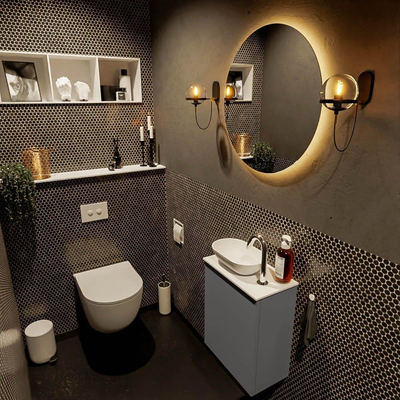 Mondiaz Fowy Meuble de toilette - 60x50x23cm - fumée mat - 1 trou de robinet - lavabo à droite - 2 portes - solid surface - plan MDF - lavabo : blanc