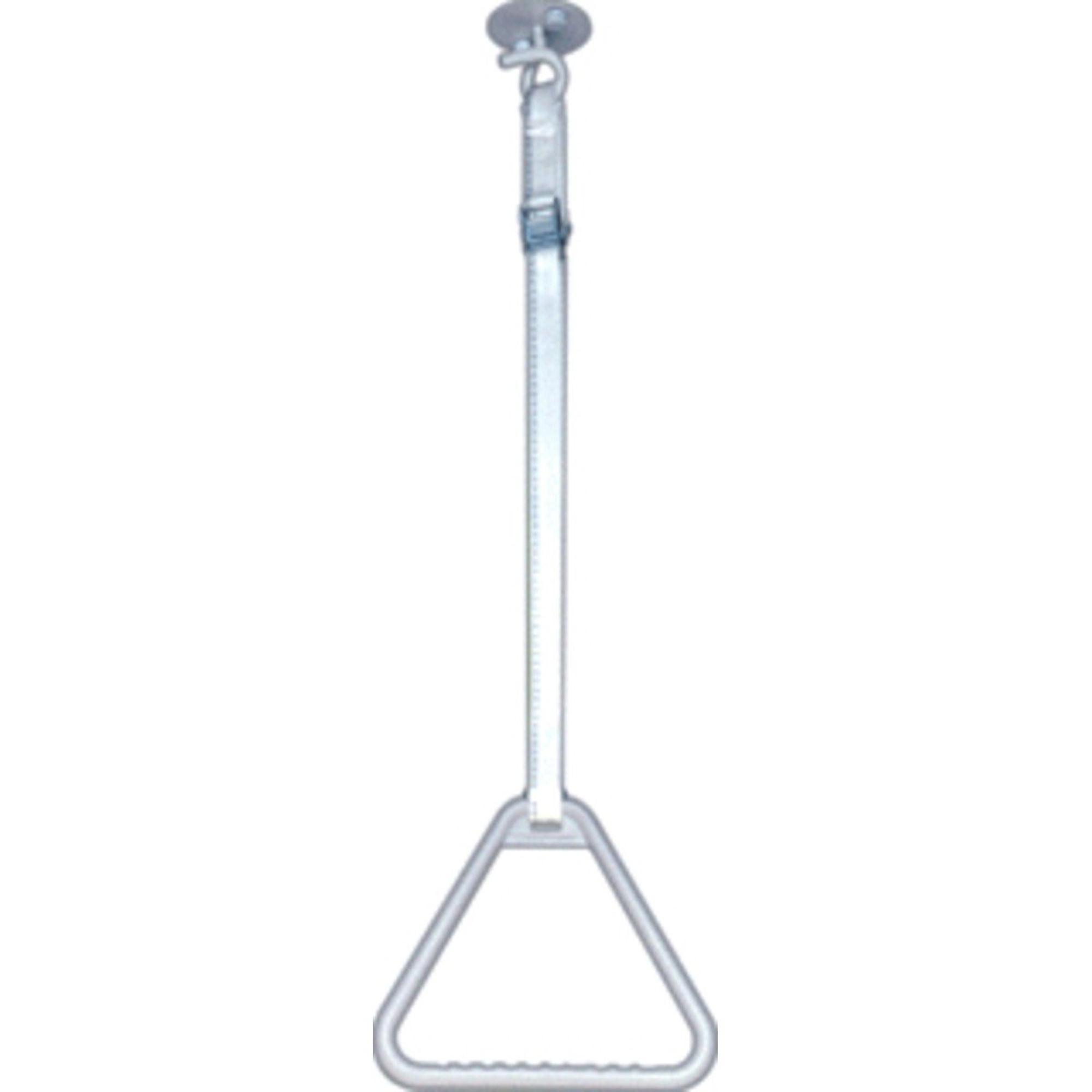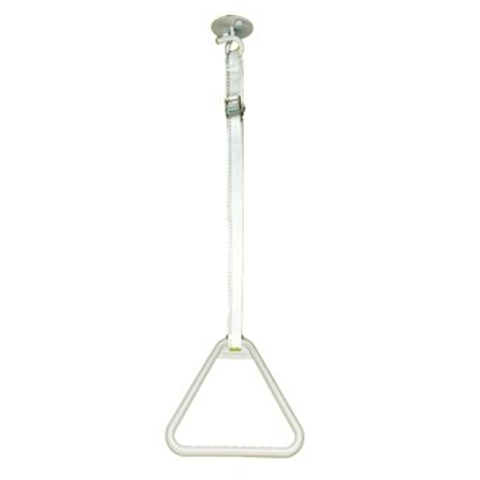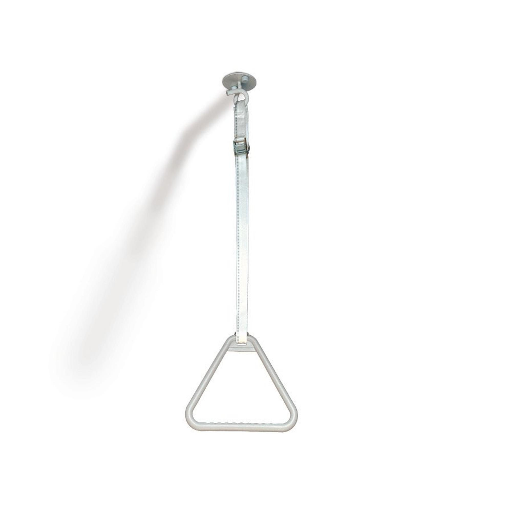 - Poignée triangulaire montée au plafond servant d’appui solide pour les transferts et pour se lever.