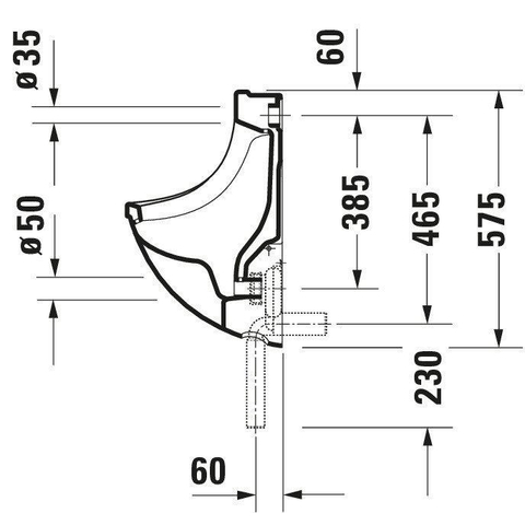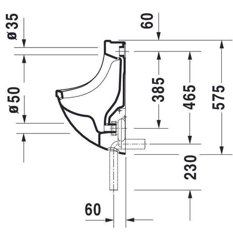 Avec une largeur de 35 cm, une profondeur d’environ 35 cm et une hauteur de 57,5 cm, cet urinoir est particulièrement adapté aux petits espaces sanitaires, aux longs couloirs ou aux blocs sanitaires où vous souhaitez installer plusieurs appareils côte à côte. La fixation murale avec arrivée arrière laisse le sol dégagé, ce qui donne non seulement une impression d’espace mais facilite également le nettoyage du sol. Grâce à la profondeur standard, le confort d’utilisation est suffisant, tandis que l’avancée limitée est idéale dans les espaces étroits où chaque centimètre compte. Vous combinez ainsi confort d’utilisation au quotidien et aménagement efficace de l’espace.