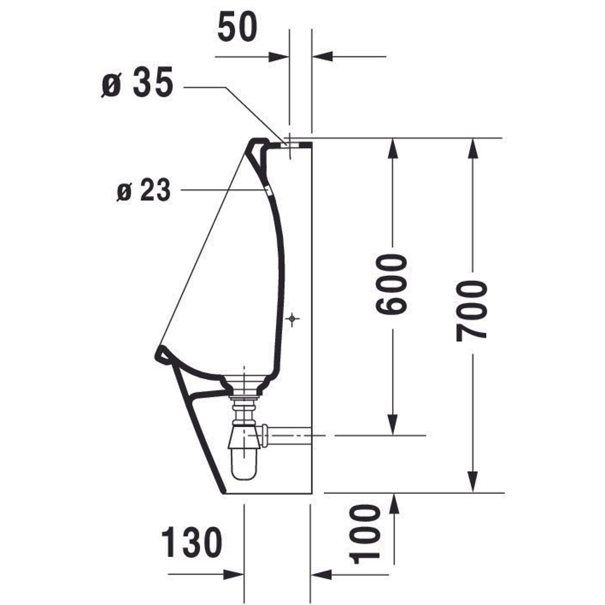 - Urinoir élancé en version rigole : seulement 24,5 cm de large et 30 cm de profondeur, idéal pour les espaces compacts.