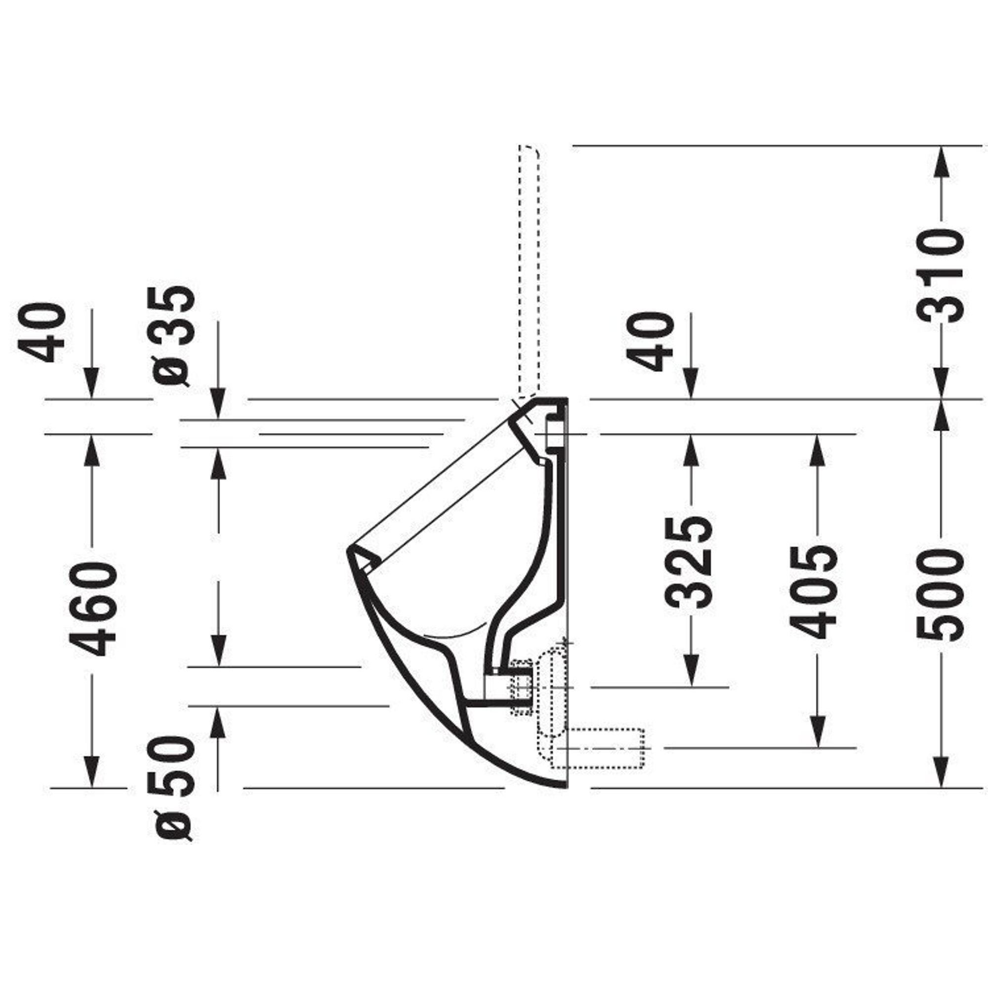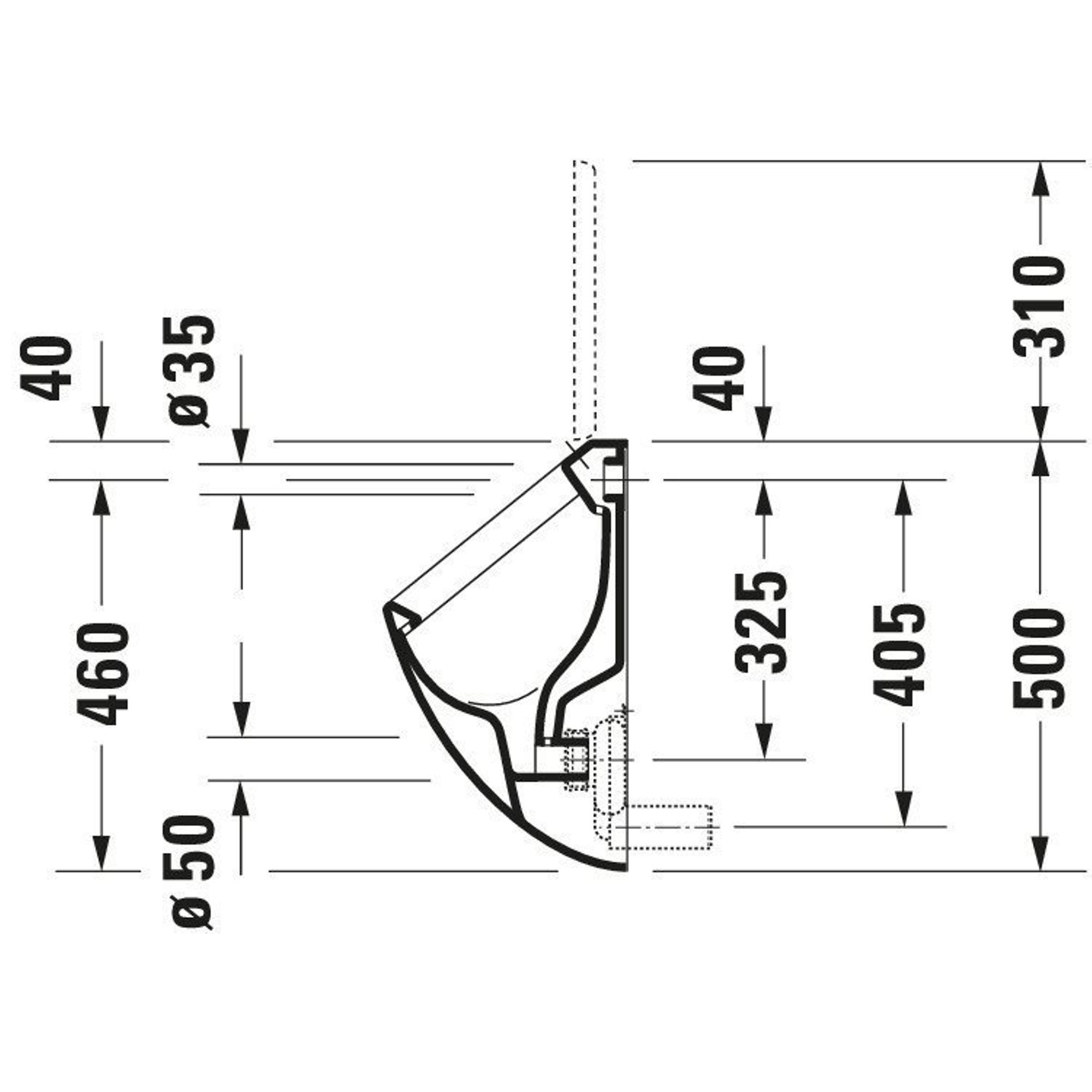 Avec une largeur d'environ 30,5 cm et une hauteur de 50 cm, cet urinoir est compact, mais néanmoins suffisamment spacieux pour un confort d'utilisation optimal. La fixation murale permet de garder le sol dégagé, ce qui donne non seulement une impression d'espace, mais facilite également le nettoyage de l'espace sanitaire. L'arrivée arrière pour l'eau de rinçage permet de conserver une apparence calme et épurée, car l'alimentation est discrètement dissimulée. Dans les petits espaces sanitaires ou les toilettes d'invités, chaque centimètre compte, et ce modèle est donc particulièrement adapté si vous souhaitez combiner fonctionnalité et apparence nette et professionnelle.