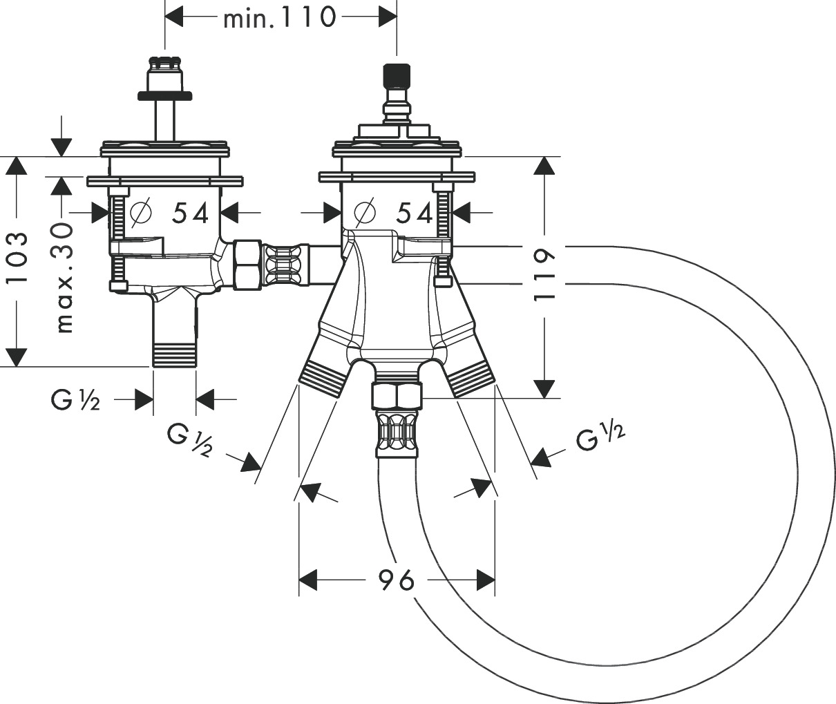 Hansgrohe Universeel corps encastré pour robinet thermostatique de bord de baignoire 2 trous