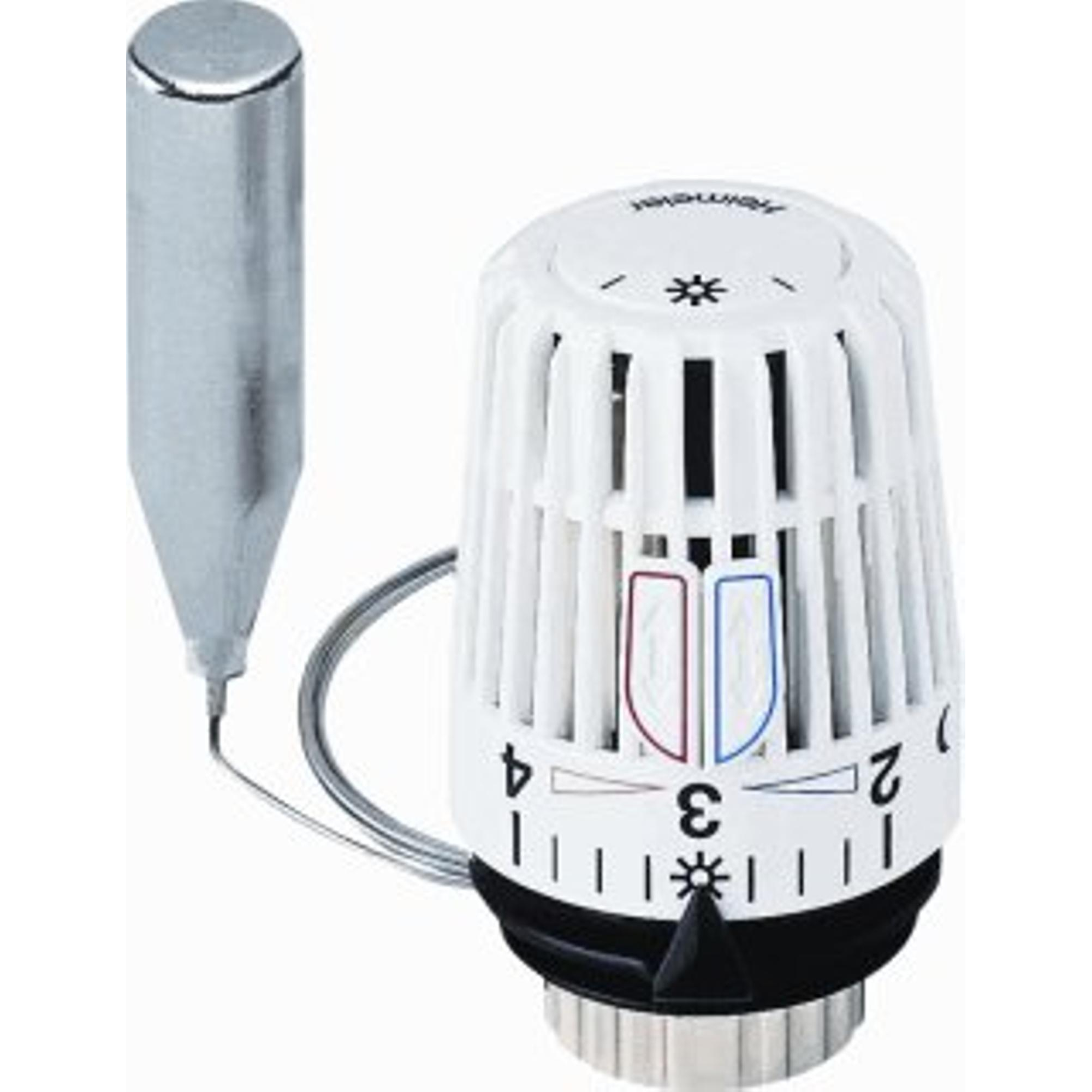 Grâce au tube capillaire de 2 mètres, vous placez le capteur exactement là où la température est vraiment importante, par exemple sur le mur à côté du radiateur ou juste à l’extérieur d’un habillage de radiateur. Le capteur rempli de liquide réagit rapidement et de manière stable, de sorte que les variations dans la pièce sont bien compensées. Avec une plage de réglage d’environ 6 à 27 °C, vous adaptez facilement le chauffage à vos besoins : protection antigel lorsque vous êtes en vacances, position confort pendant l’occupation ou une température plus basse pour la nuit. L’influence de la température de l’eau et de la différence de pression est limitée (0,3 K), ce qui contribue à un climat intérieur constant. Vous profitez ainsi d’un confort accru sans devoir intervenir en permanence.