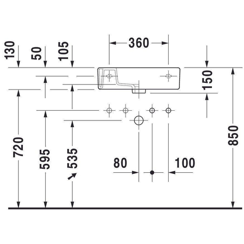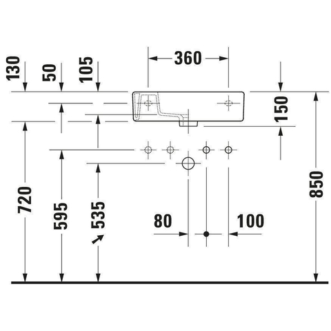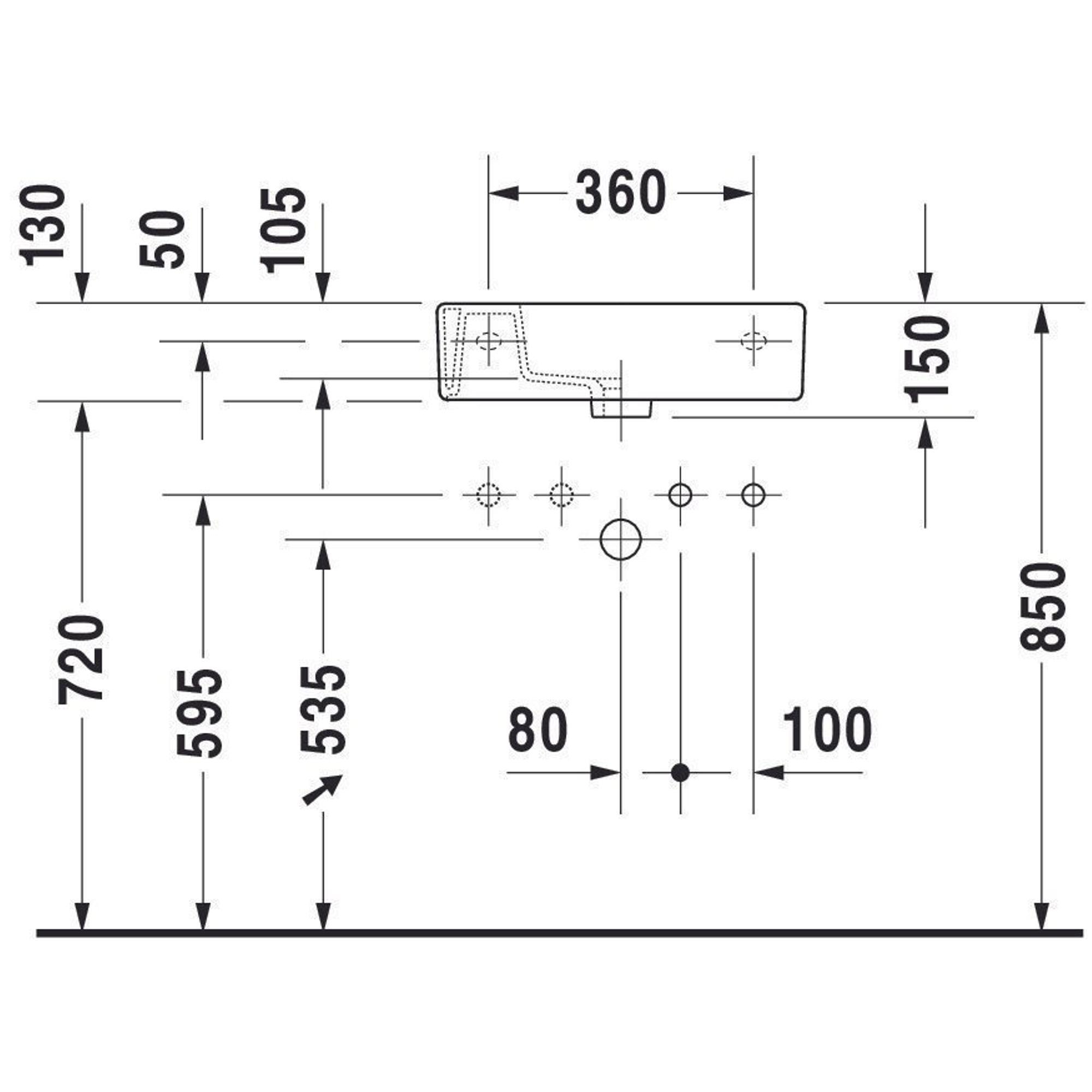 Duravit Vero lave-mains 50x25 cm. 1x trou de robinet à gauche avec trop-plein blanc