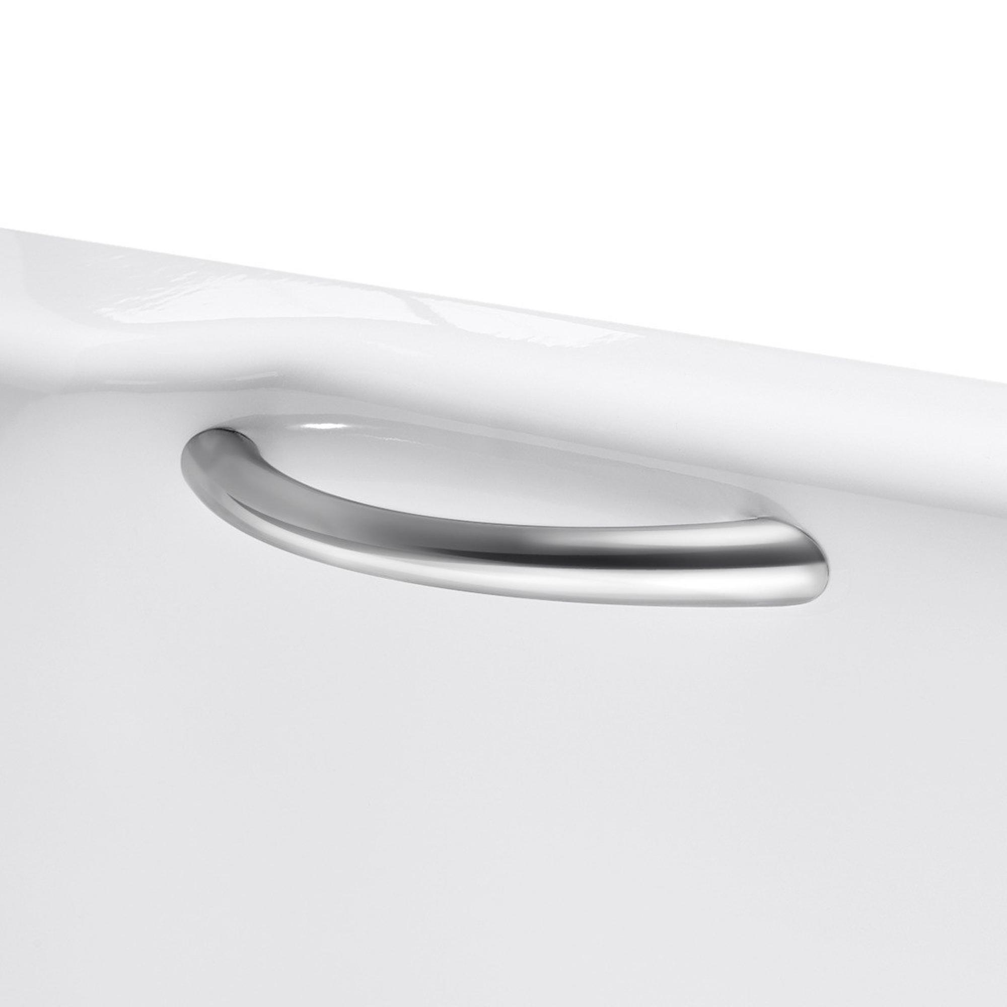 La finition chromée haute brillance s’accorde parfaitement avec la plupart des robinets de baignoire, de douche et autres accessoires de salle de bains. Grâce à la forme classique, subtilement arrondie, les poignées ont un aspect intemporel et s’intègrent parfaitement dans un intérieur élégant et classique, mais elles ne dénotent pas non plus dans une salle de bains moderne aux lignes épurées. La surface brillante reflète la lumière dans la pièce, ce qui confère un peu plus de luxe au tablier de baignoire. En choisissant un ensemble dans la même gamme de couleurs que de nombreux robinets standards, vous créez facilement un ensemble harmonieux et apaisant autour de votre baignoire.
