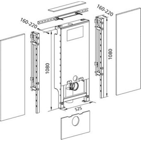 Burda Santro Élément WC E avec réservoir de chasse encastré Geberit UP320 autoportant 82,5/108cm avec chasse double touche frontale largeur max. 125cm