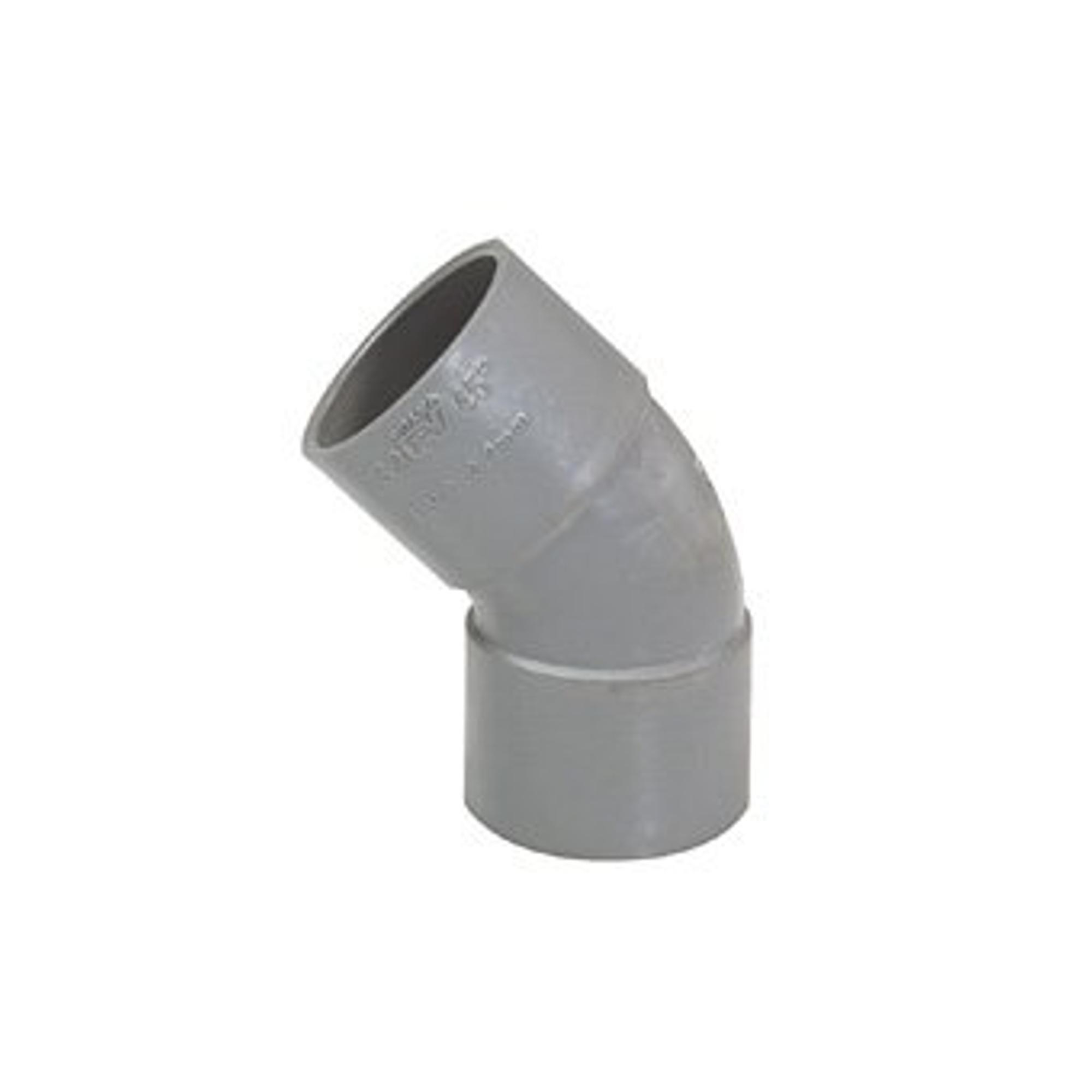 - Coude PVC à coller avec angle de 45 degrés, idéal pour des trajets d'évacuation fluides