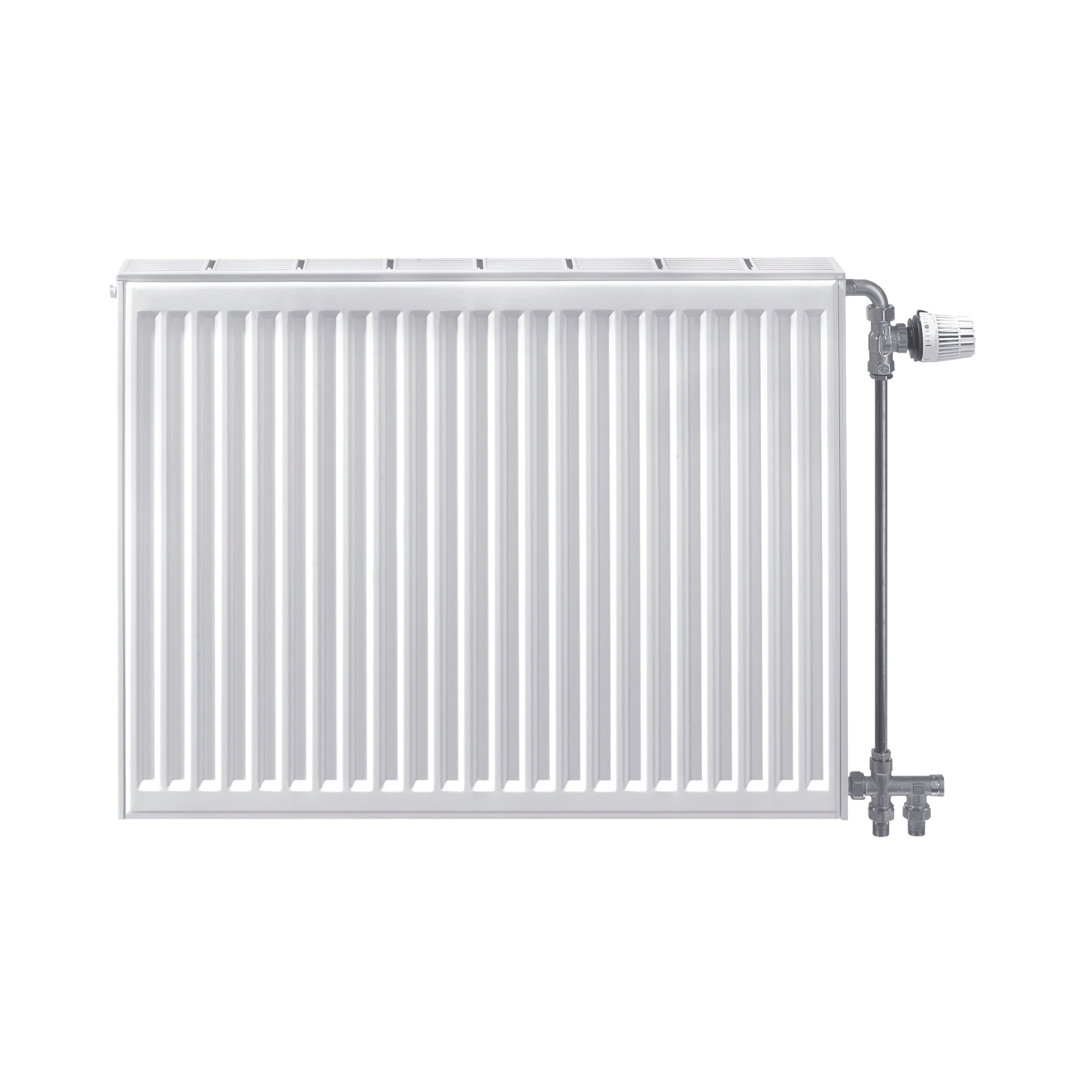 Grâce à sa construction compacte et aux accessoires standard fournis, tels que consoles murales, bouchon et purgeur, vous pouvez faire installer ce radiateur rapidement et proprement par votre installateur. Les quatre raccords 1/2"""" (deux de chaque côté) vous offrent en outre une flexibilité dans le sens de raccordement, ce qui est pratique lors d’une rénovation ou du remplacement d’un radiateur existant. Il est également pratique à l’usage au quotidien : la face avant plane et profilée et le carter fermé sont faciles à nettoyer avec un chiffon doux, ce qui limite l’accumulation de poussière et vous permet de profiter plus longtemps d’un aspect frais et hygiénique.