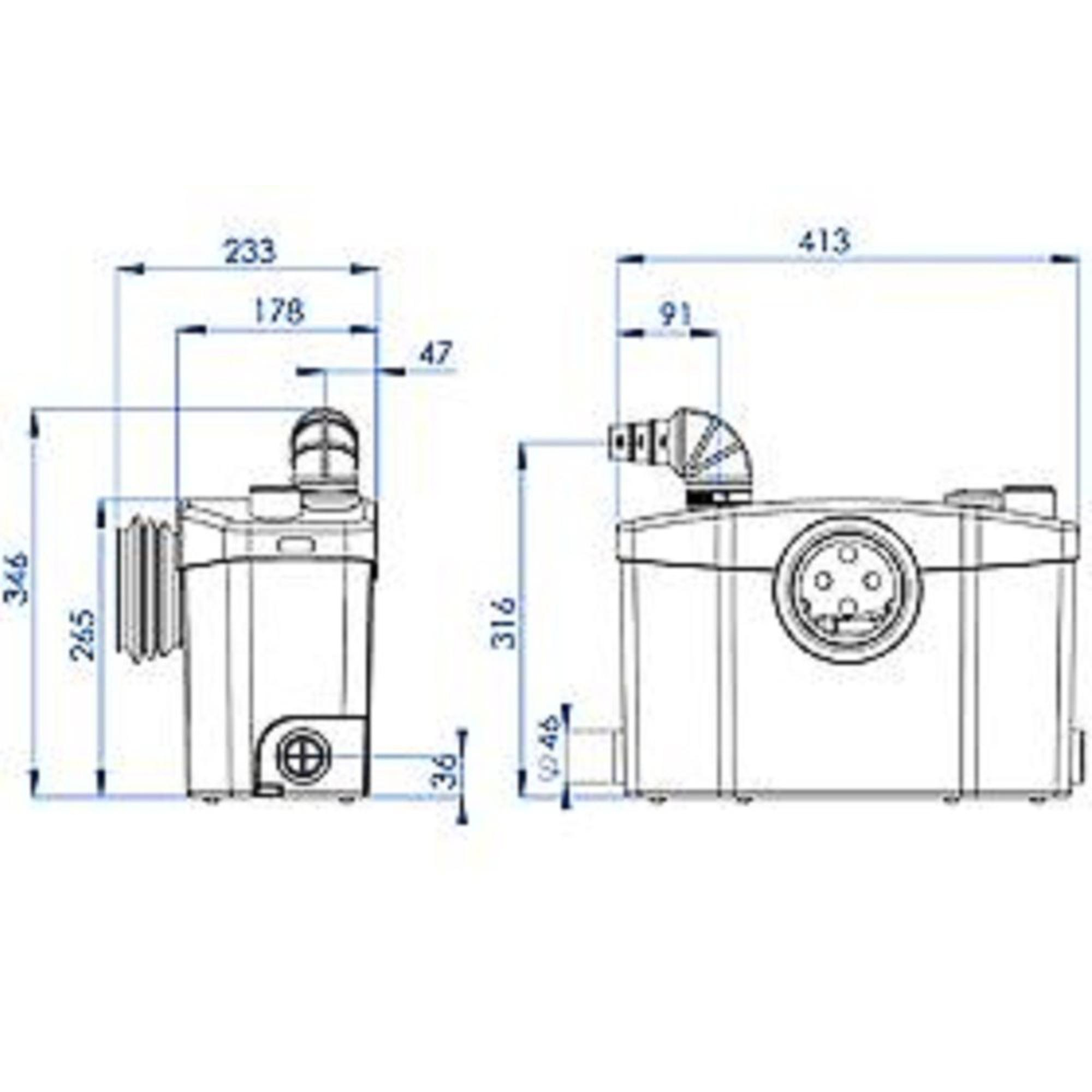 Sanibroyeur Sanipro broyeur de WC pour lavabo/lave-mains bidet et douche hauteur de refoulement 5m horizontal 100m blanc