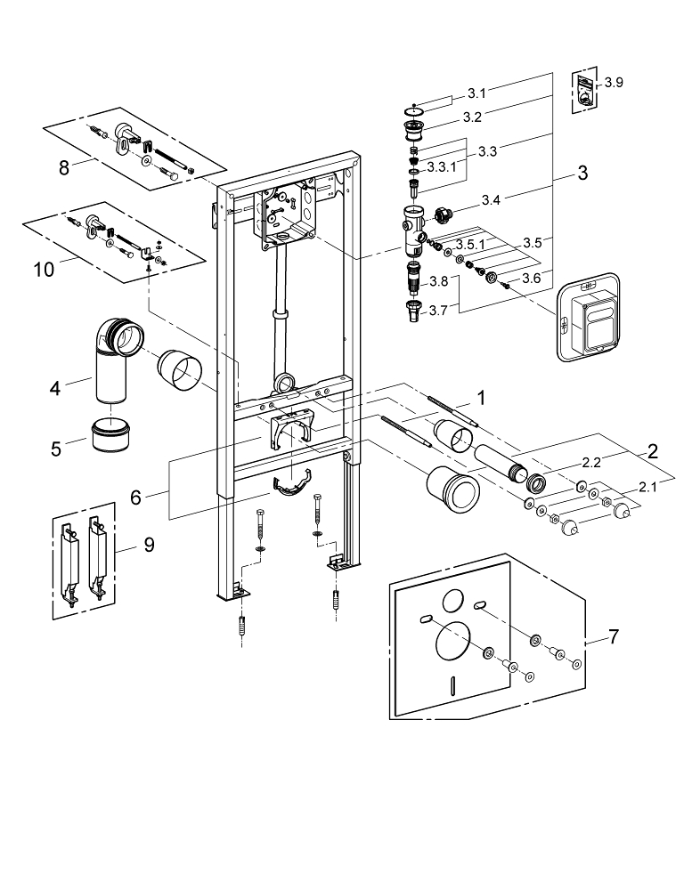 GROHE Rapid SL Elément WC mural ou pour montage système hauteur 113cm pour poussoir