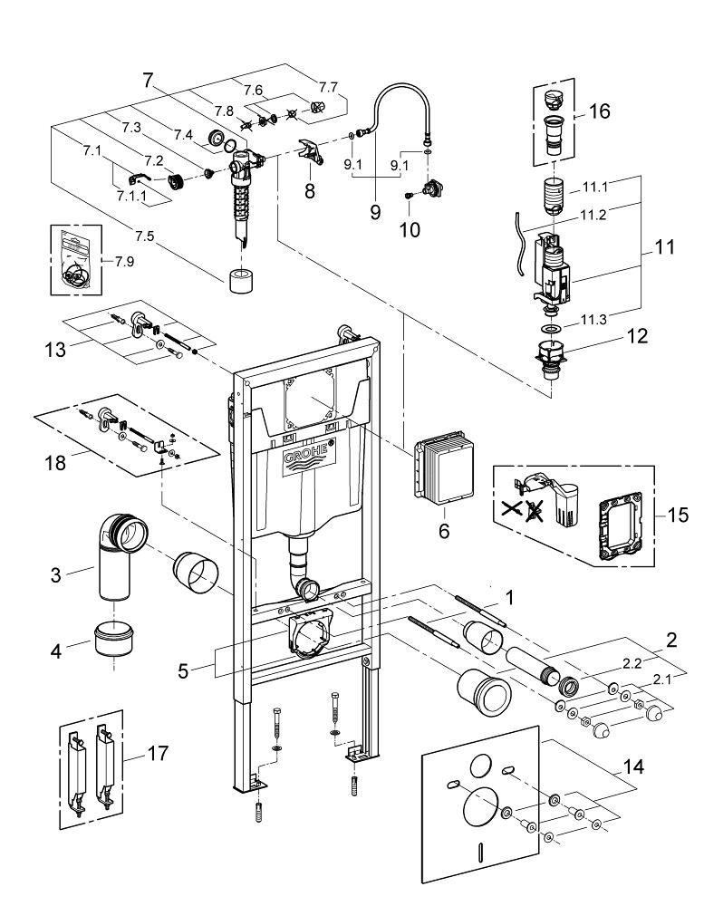 - Réservoir encastré adapté au montage sur paroi ou cloison sèche avec une hauteur de 113 cm