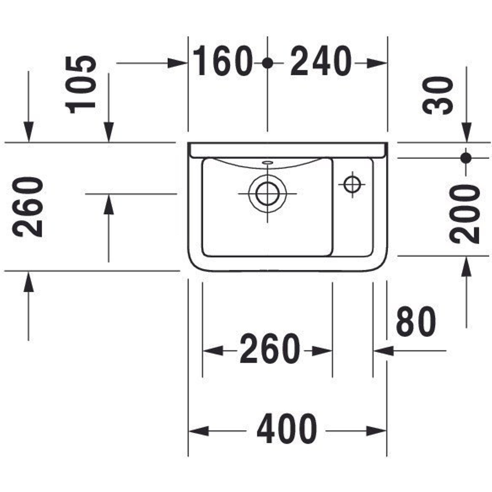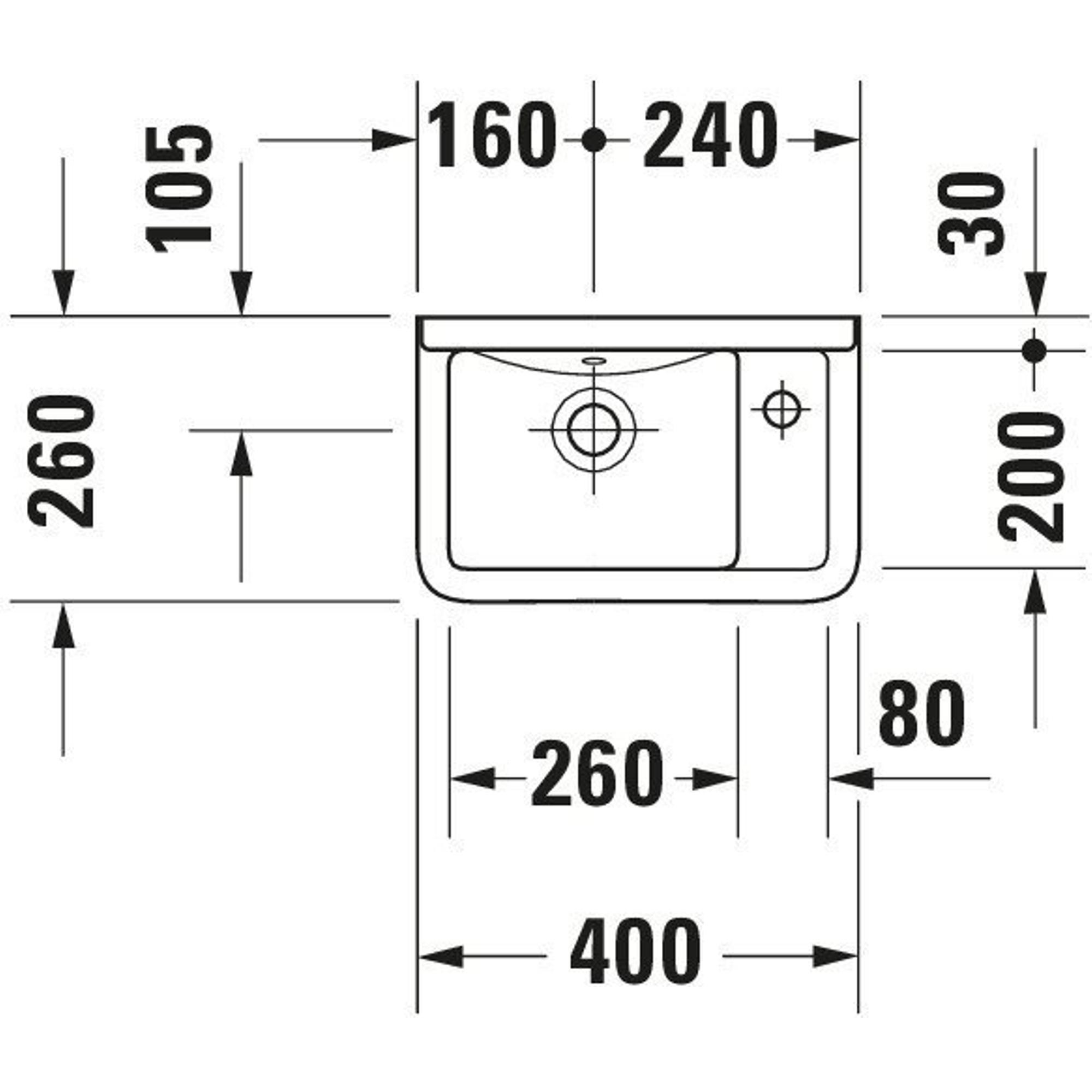 - Lave-mains compact de 40x26 cm, idéal pour les petites toilettes et les niches étroites de salle de bains.