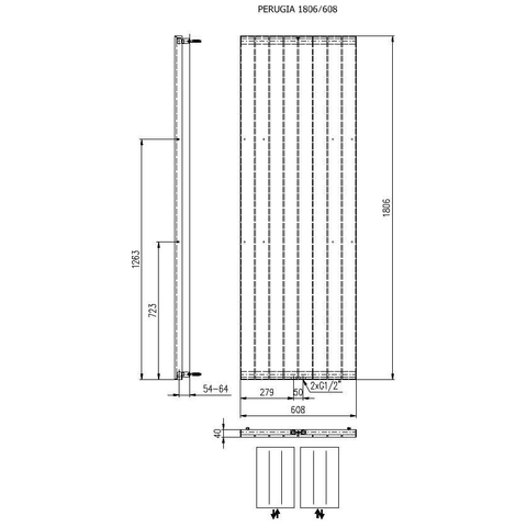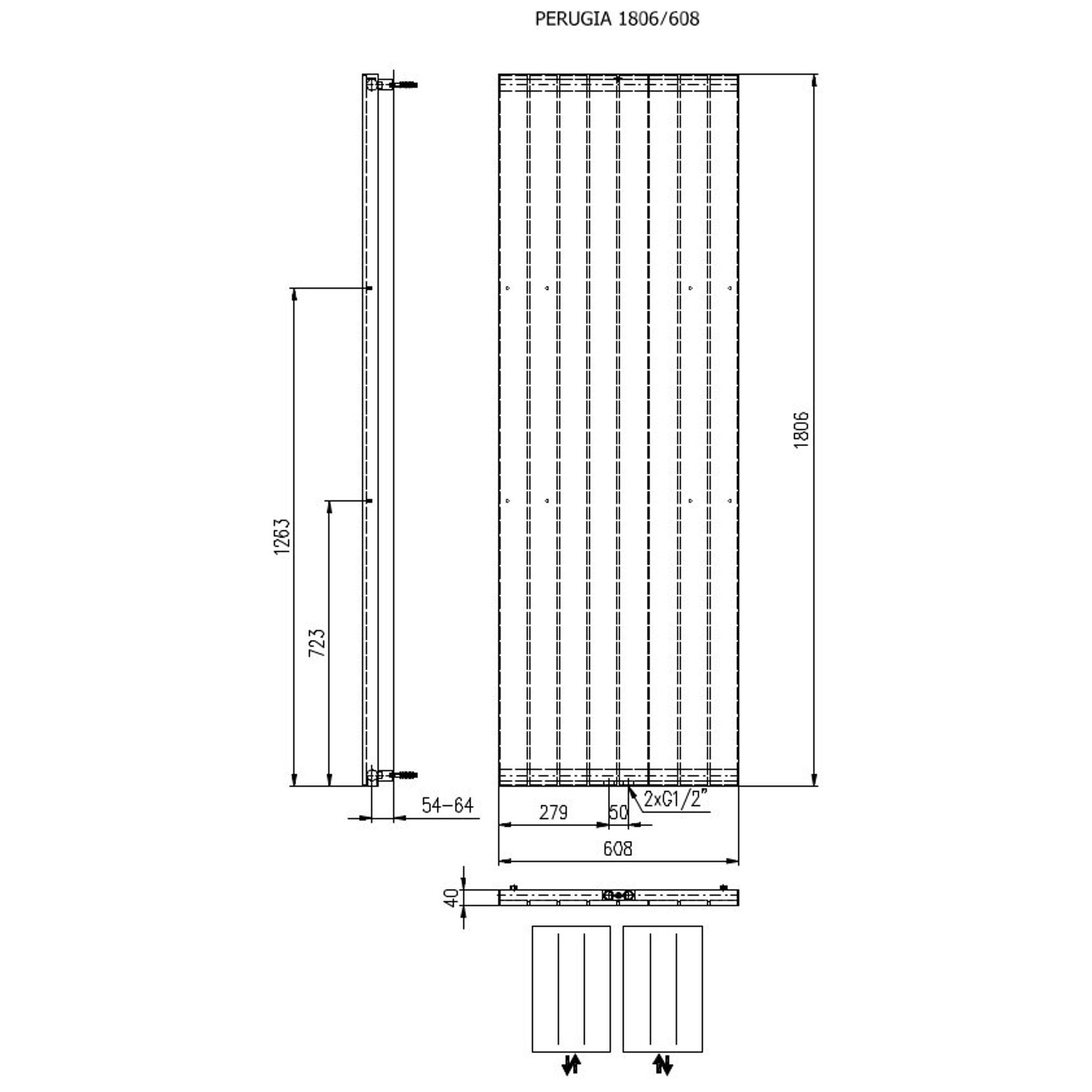 Plieger Perugia radiateur design vertical raccordement central 1806x608mm 1070W blanc