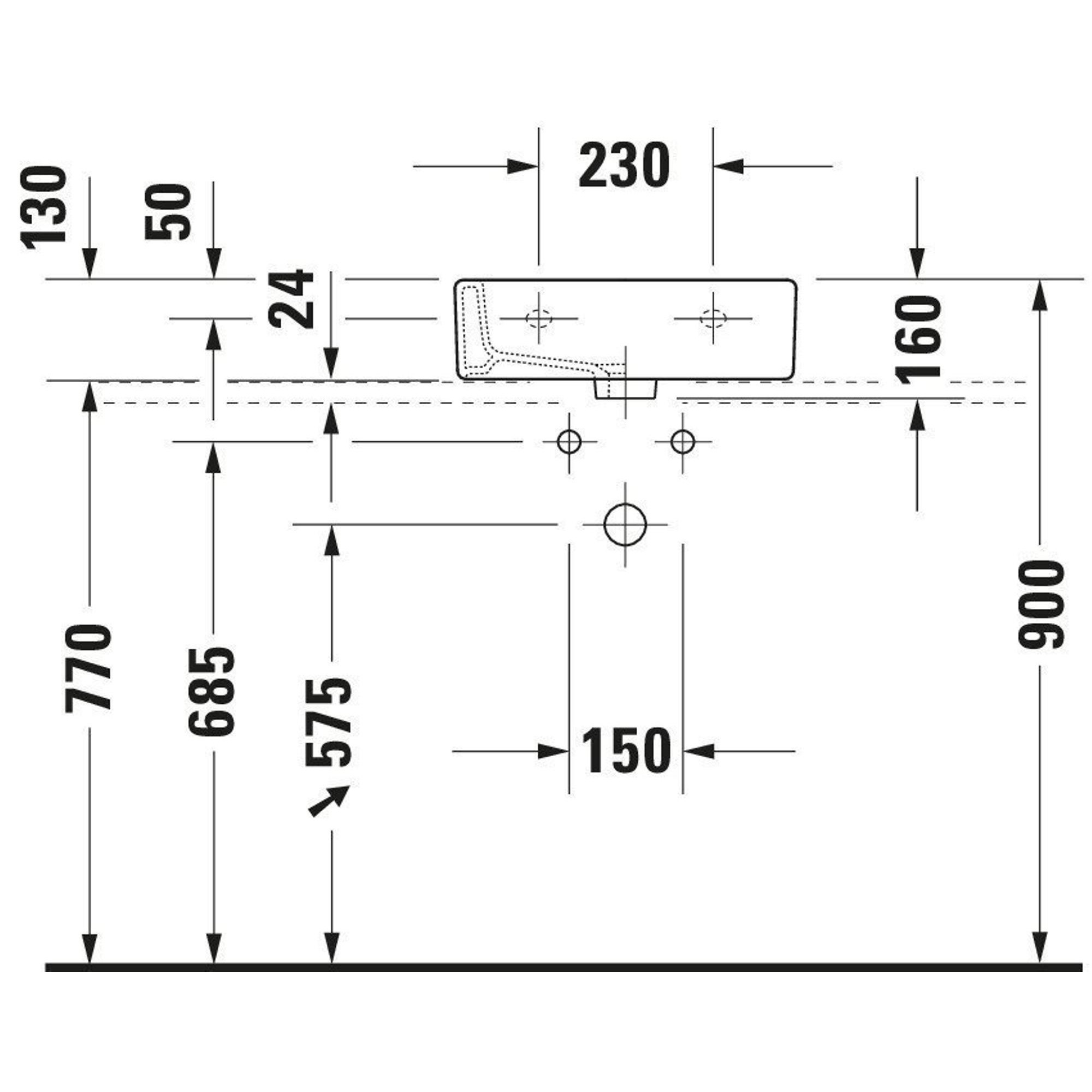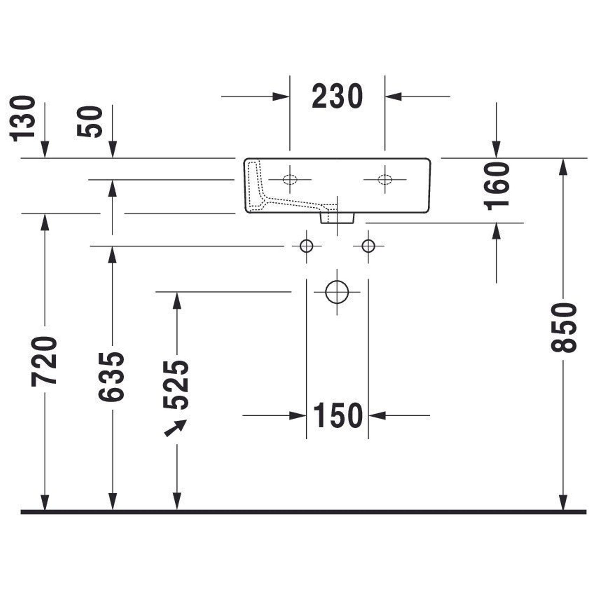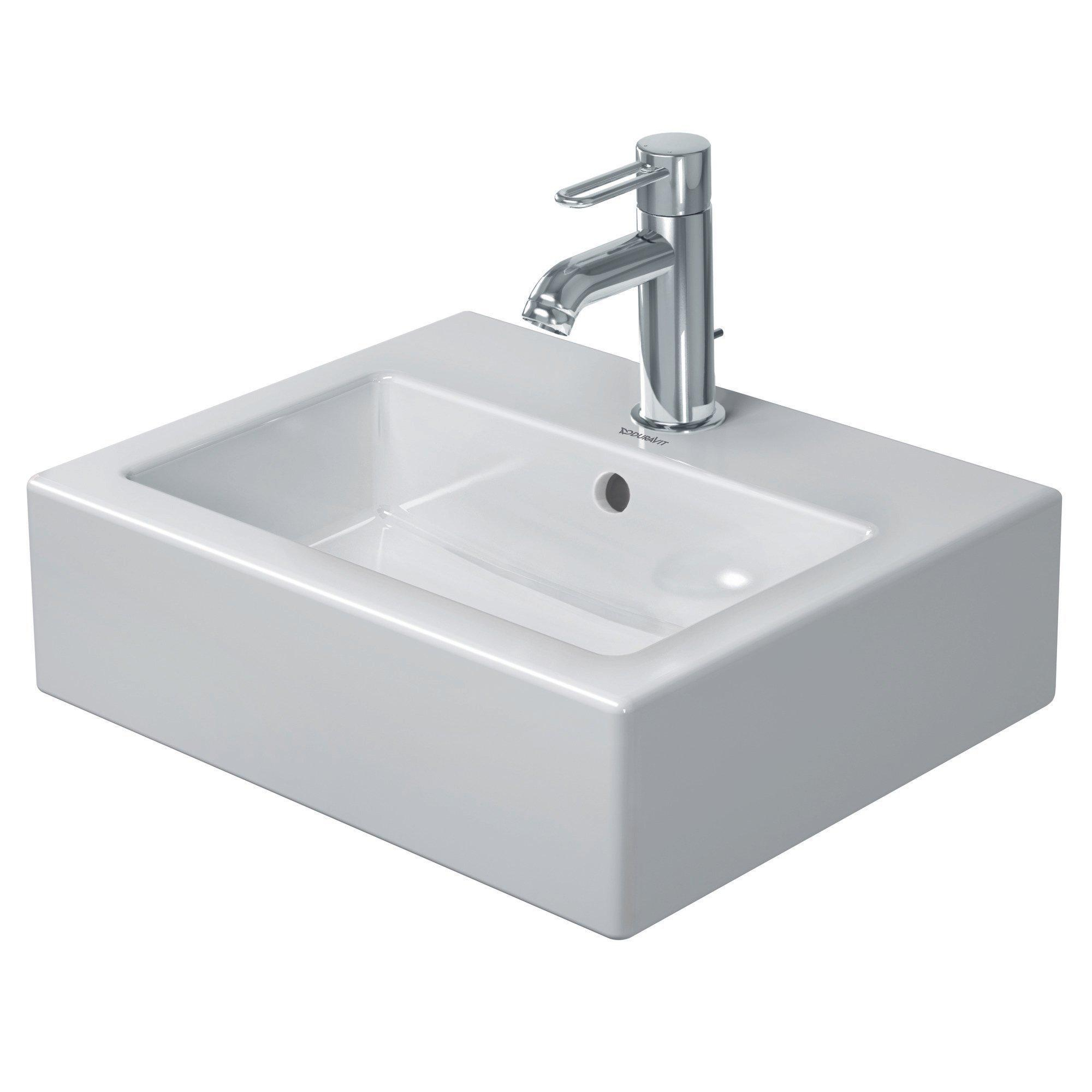 Duravit Vero lave-mains dessous rectifié 45x35cm avec trou de robinetterie et trop-plein blanc