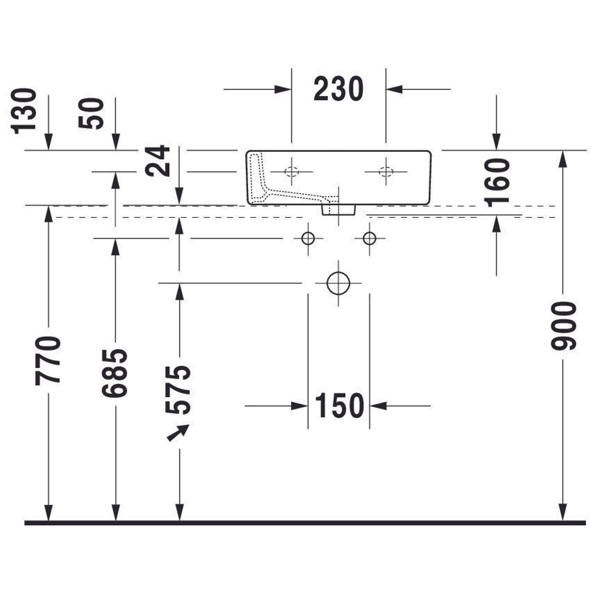 - Équipé d’un trou de robinetterie central, adapté à la plupart des robinets lave-mains standards.
