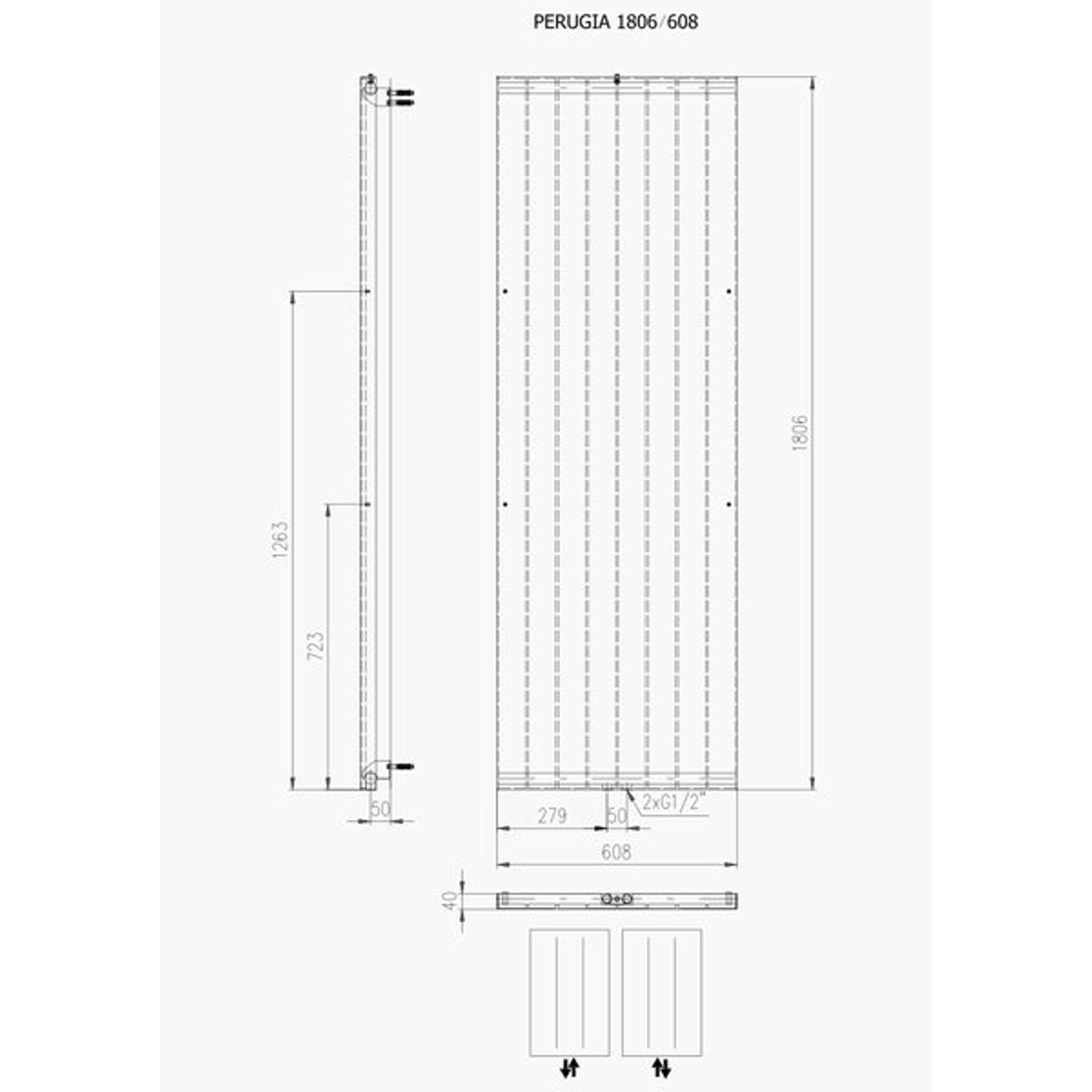 Plieger Perugia radiateur design vertical raccordement central 1806x608mm 1070W anthracite métallisé