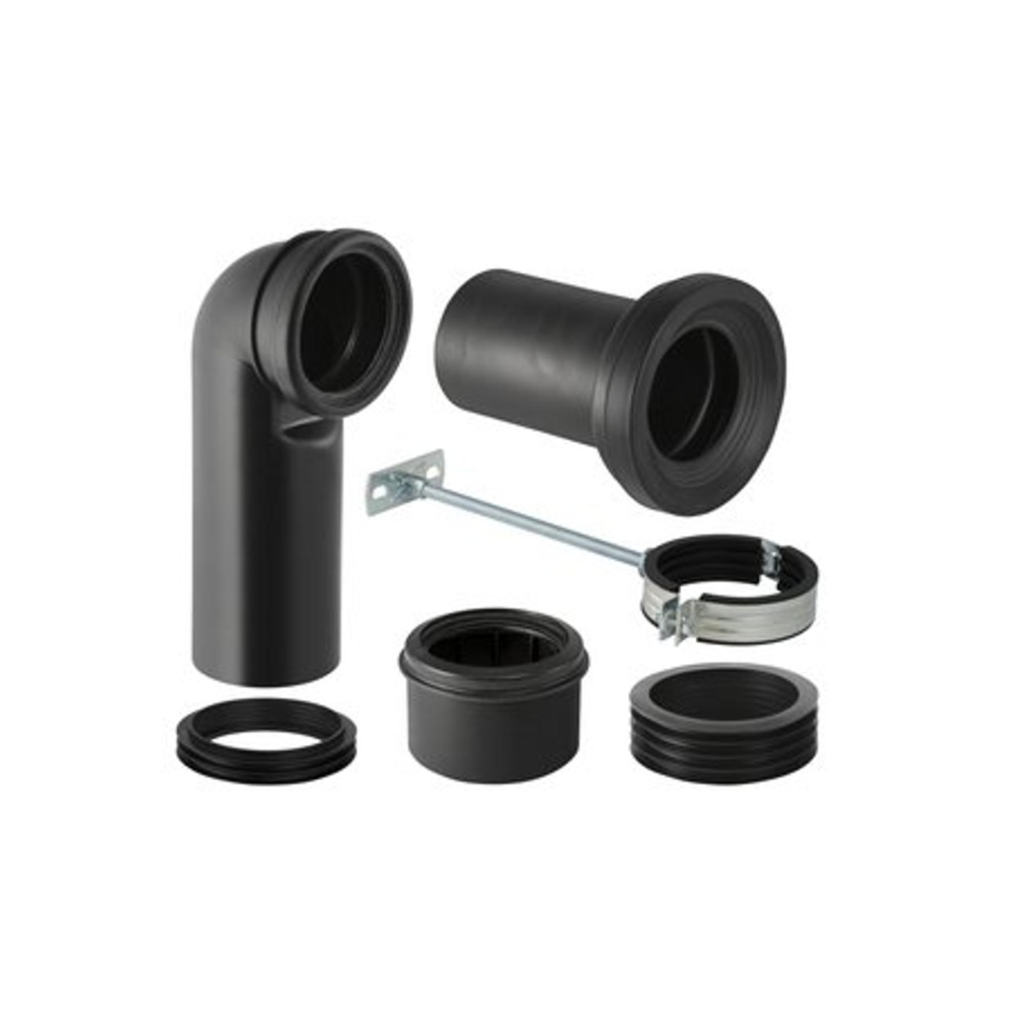 - Kit de raccordement complet pour cuvettes au sol avec évacuation vers ou près du mur