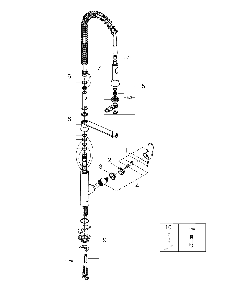 GROHE K7 Robinet de cuisine avec douchette professionnelle acier