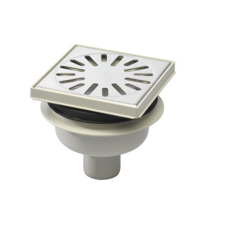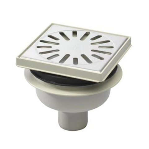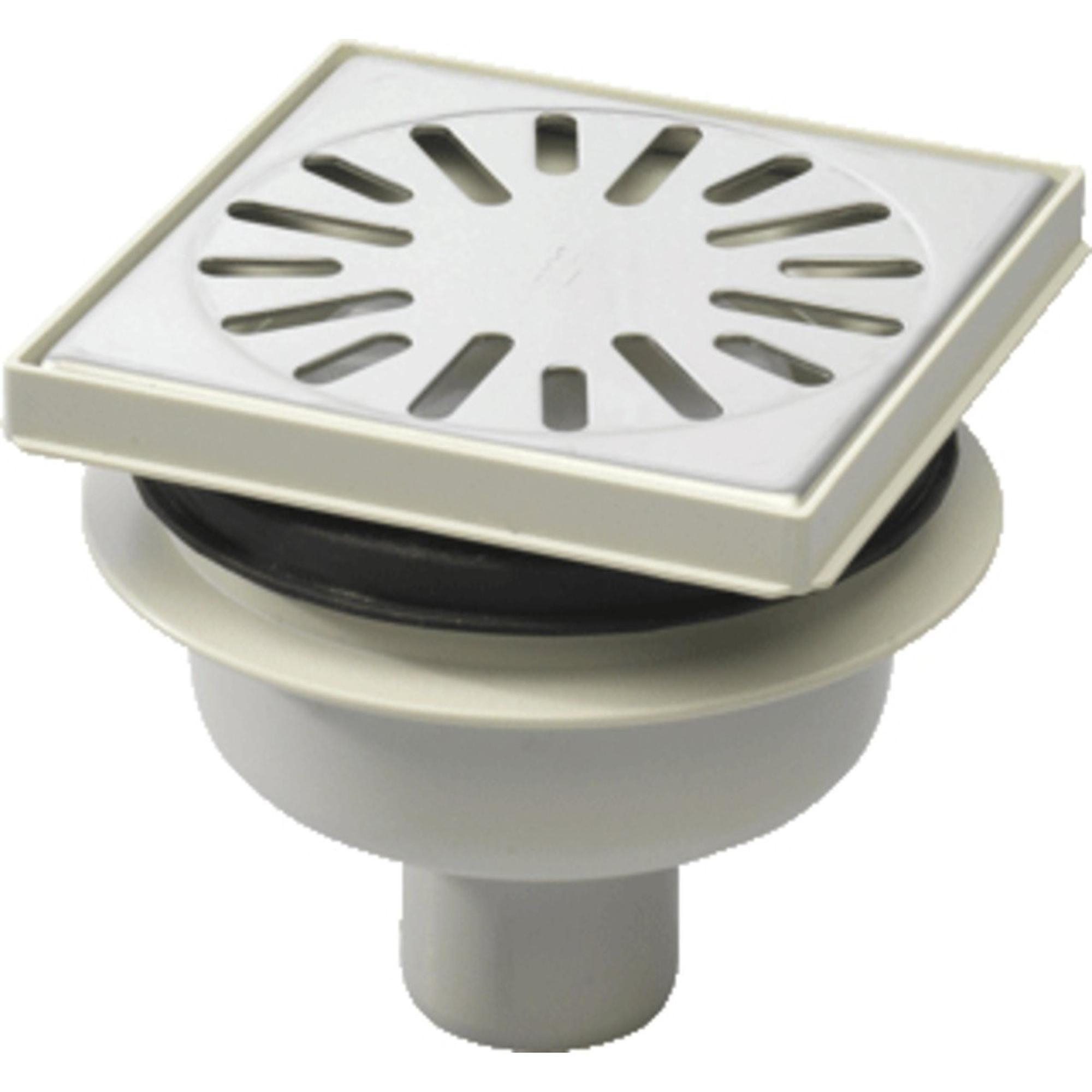 Aquaberg regard en plastique avec sortie inférieure 50 mm grille inox réglable 146x146 mm avec garde d'eau PPC 50 mm vertical 30/horizontal 15 mm