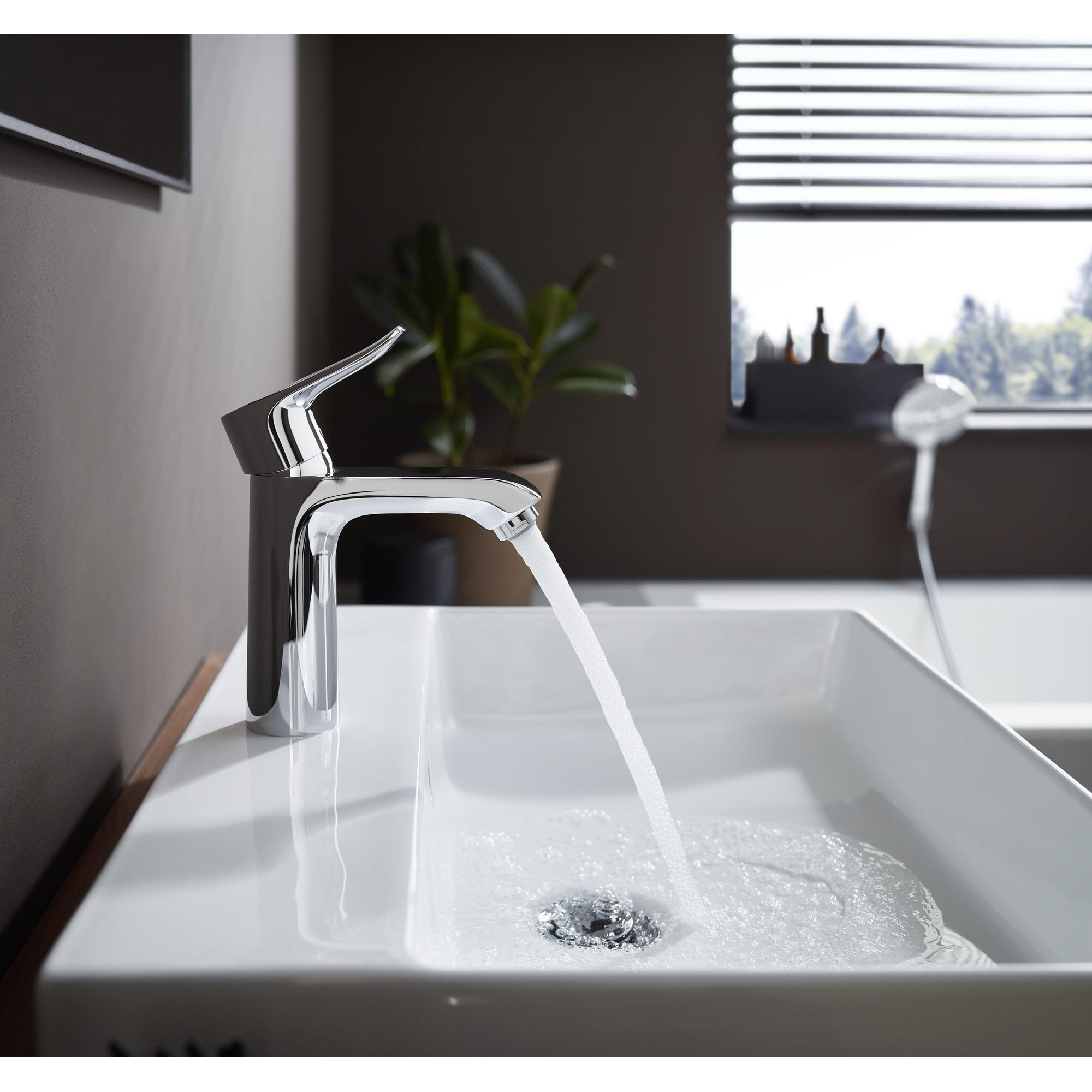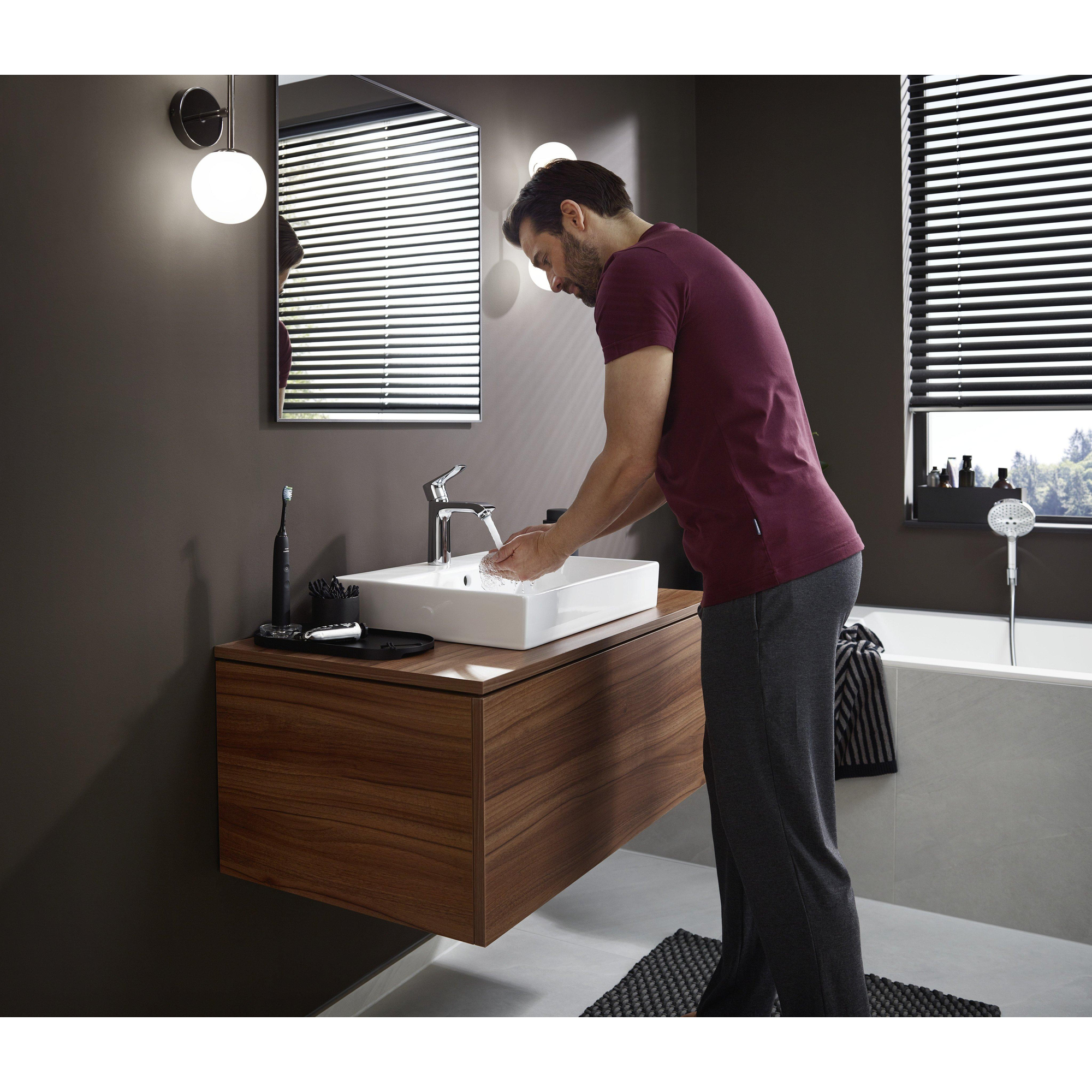 Ce robinet est fabriqué à partir de matériaux de haute qualité garantissant une longue durée de vie et des performances fiables. Grâce à la technologie EcoSmart, vous consommez jusqu'à 50 % d'eau en moins sans sacrifier le confort. Cela signifie non seulement une facture d'eau plus basse, mais aussi une contribution consciente à l'environnement. Le limiteur de température intégré assure en outre une sécurité supplémentaire, idéal si vous avez des enfants ou des personnes âgées à la maison. Avec les picots en silicone QuickClean, vous éliminez facilement les dépôts de calcaire, ce qui permet au robinet de toujours paraître comme neuf. Ainsi, vous profitez pendant des années de qualité et de durabilité dans votre salle de bains.