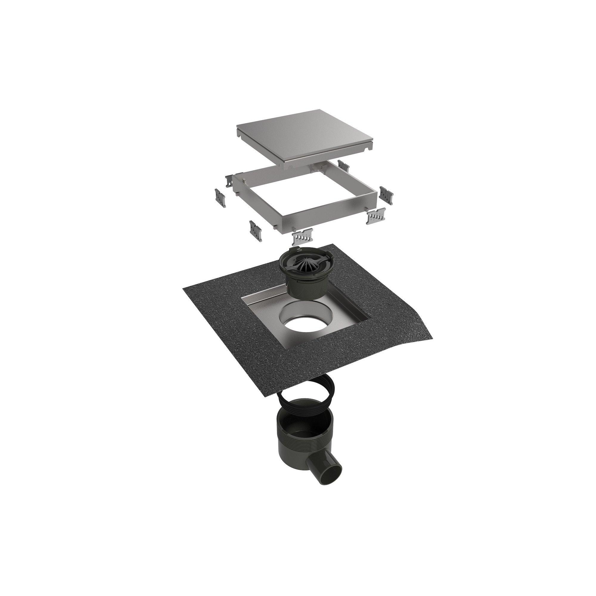 Easy Drain AquaJewels Quattro Zero brossé 20x20cm avec sortie latérale 50mm garde d'eau 30/35/50mm inox AJQ 20X20 ZM