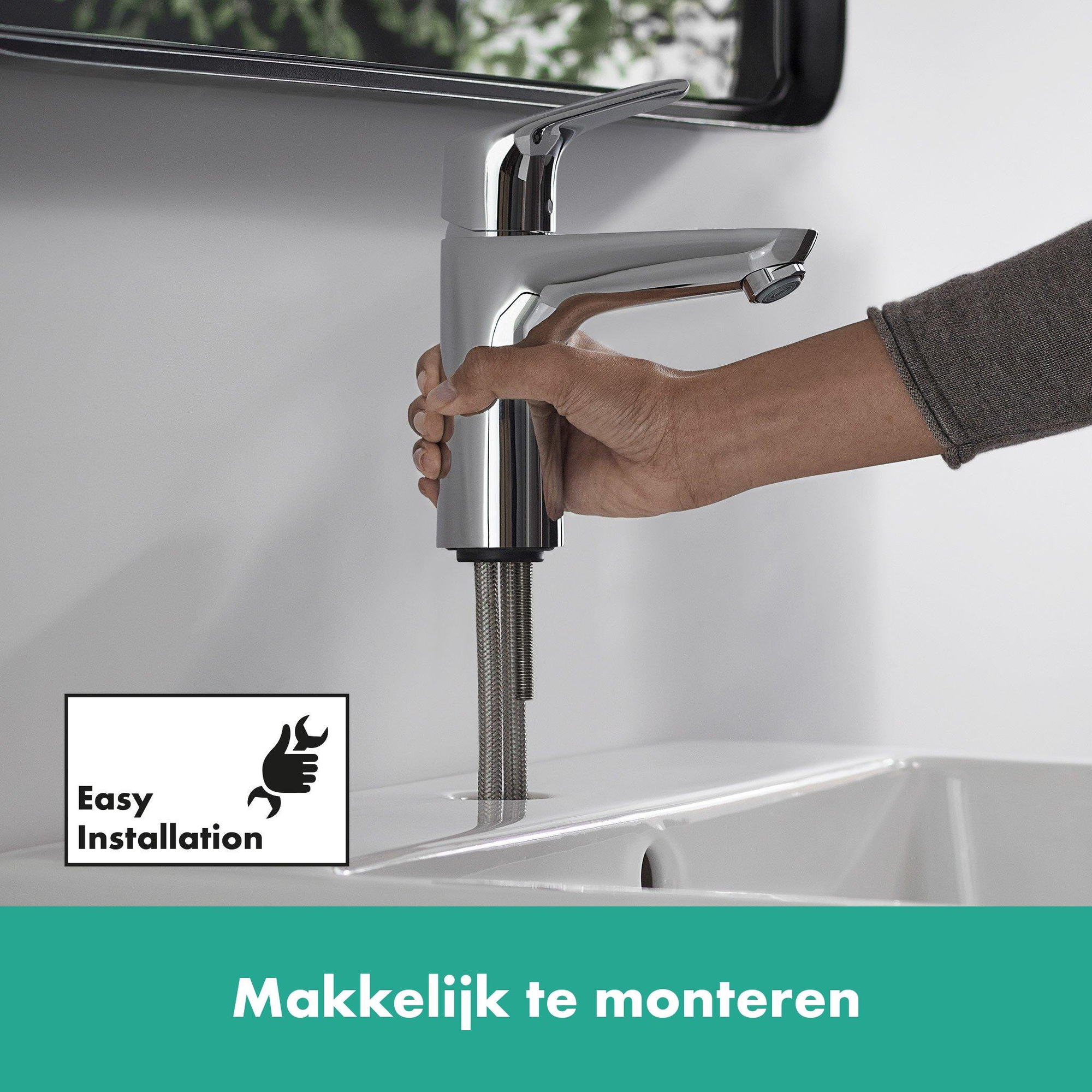 Le robinet est conçu en pensant à la facilité d'utilisation. La ComfortZone 100 offre suffisamment d'espace sous le robinet, permettant de laver facilement les mains et les petits objets. La poignée fonctionne de manière fluide et précise, vous permettant de régler rapidement la température et le débit d'eau corrects. Le système de vidage à tirette intégré facilite l'ouverture et la fermeture de la bonde du lavabo. De plus, le robinet est facile à installer avec les raccords existants, ce qui fait gagner du temps et des efforts. Ainsi, vous profitez d'une solution conviviale et pratique qui répond parfaitement à vos besoins quotidiens.