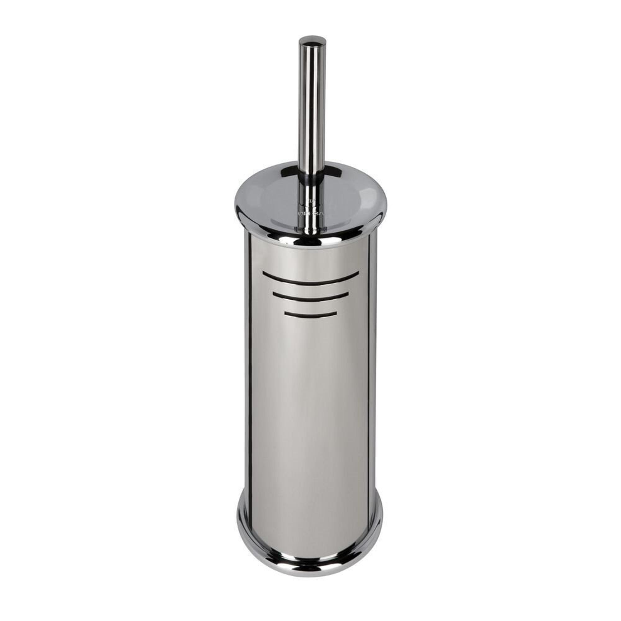 - Porte-brosse de toilettes chromé élégant avec design fermé pour une apparence ordonnée.
