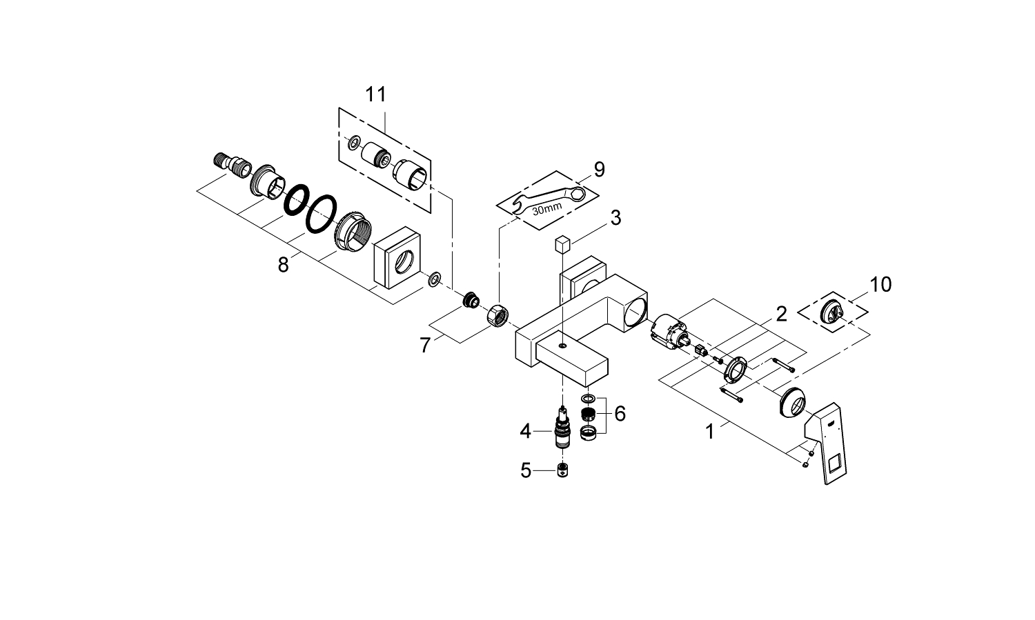 Grohe Eurocube Mitigeur baignoire