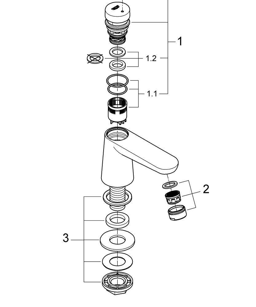 - Robinet de lavabo à fermeture automatique avec trois durées d'écoulement réglables (env. 7, 15, 30 secondes)