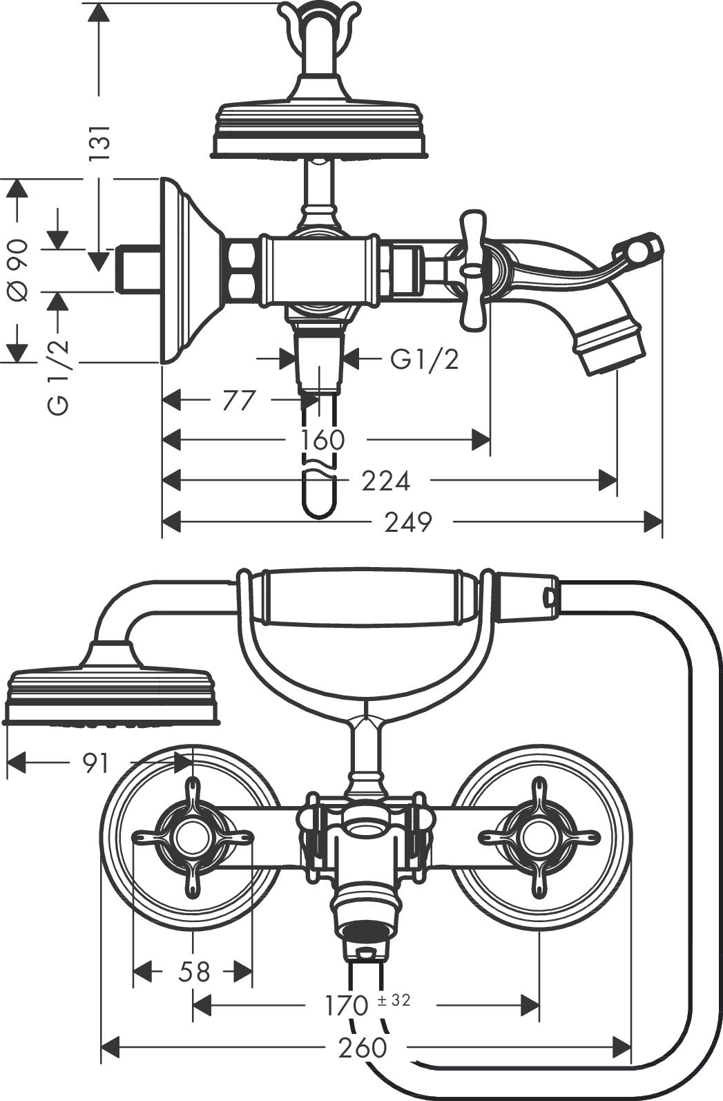 AXOR Montreux robinet de baignoire avec douchette chrome