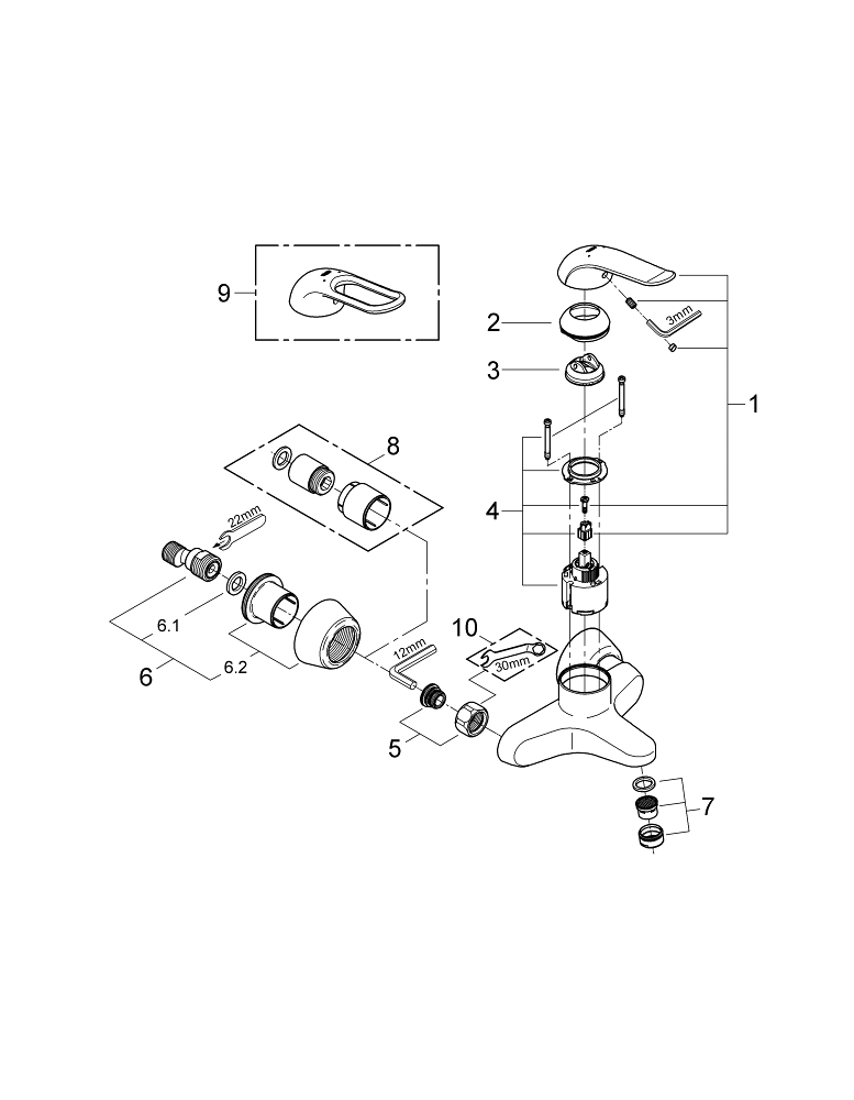 GROHE Euroeco robinet mural avec raccords chromé