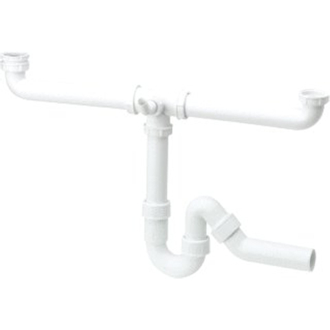 Outre le double raccordement, ce siphon dispose d’un raccord intégré pour lave-linge ou lave-vaisselle, afin que vous puissiez raccorder votre appareil en toute sécurité et proprement sur la même évacuation. Cela permet d’économiser de l’espace et évite d’avoir à placer plusieurs siphons séparés côte à côte. Le raccordement avec écrous-raccords permet de monter facilement l’évacuation et, plus tard, par exemple en cas d’obstruction ou de nettoyage, de la démonter rapidement sans outil spécial. La couleur blanche s’harmonise bien avec de nombreux agencements standard de cuisine et de lavabo, ce qui donne un aspect soigné dès que vous ouvrez le meuble. Vous combinez ainsi fonctionnalité et impression nette et ordonnée sous votre évier.