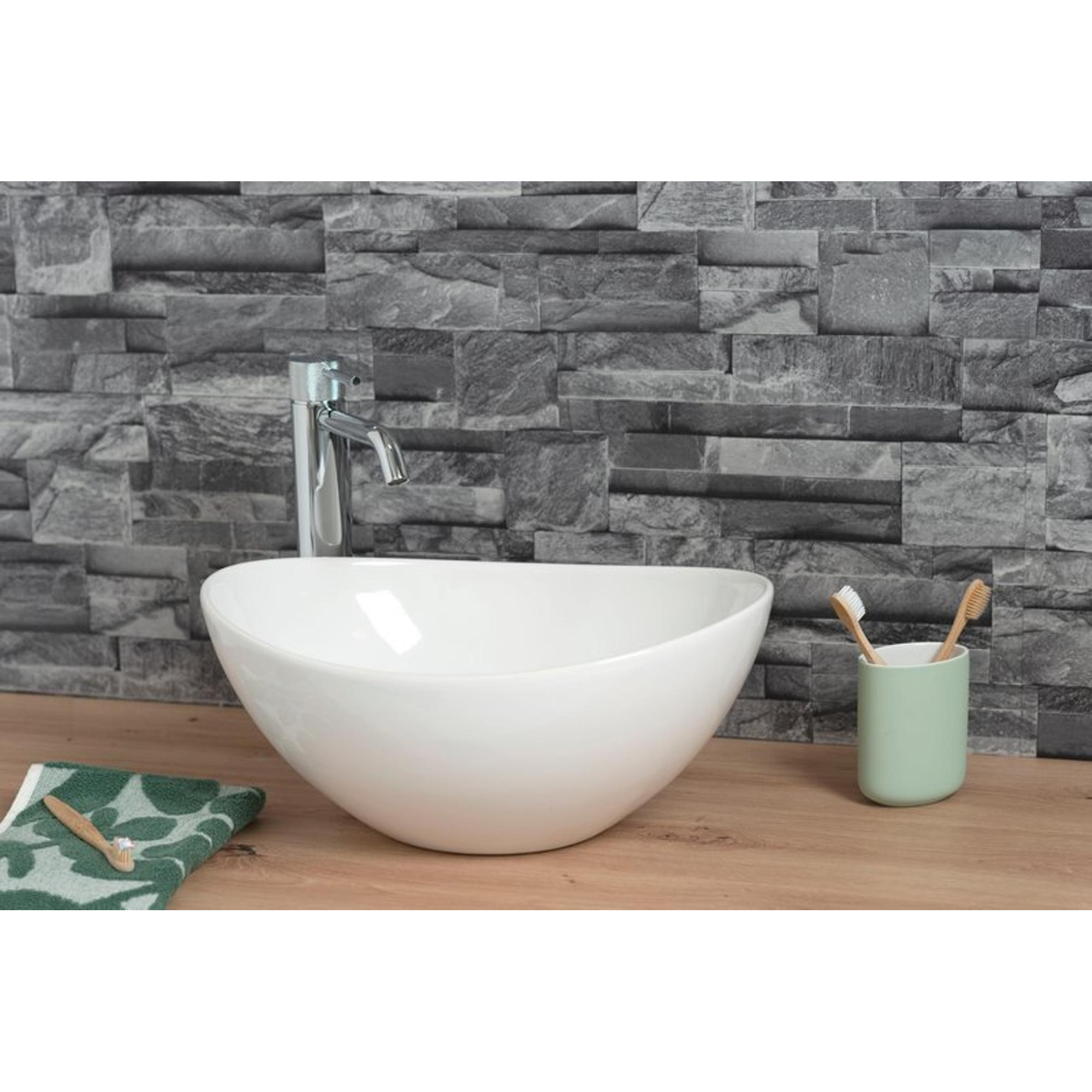 Cette vasque à poser ovale est fabriquée en céramique de haute qualité, un matériau réputé pour sa durabilité et sa facilité d’entretien dans la salle de bains. Sa surface lisse est hygiénique, facile à nettoyer et résistante à l’usage quotidien de l’eau, du savon et des accessoires de salle de bains. Grâce à ses dimensions 40,6x32,2x18,2, la vasque s’intègre parfaitement sur une grande variété de plans de toilette et de meubles vasques, ce qui vous offre une grande liberté dans l’aménagement de votre espace lavabo. La forme ovale assure un espace de rinçage confortable, tandis que l’encombrement réduit est idéal pour les salles de bains modernes où l’optimisation de l’espace est essentielle.