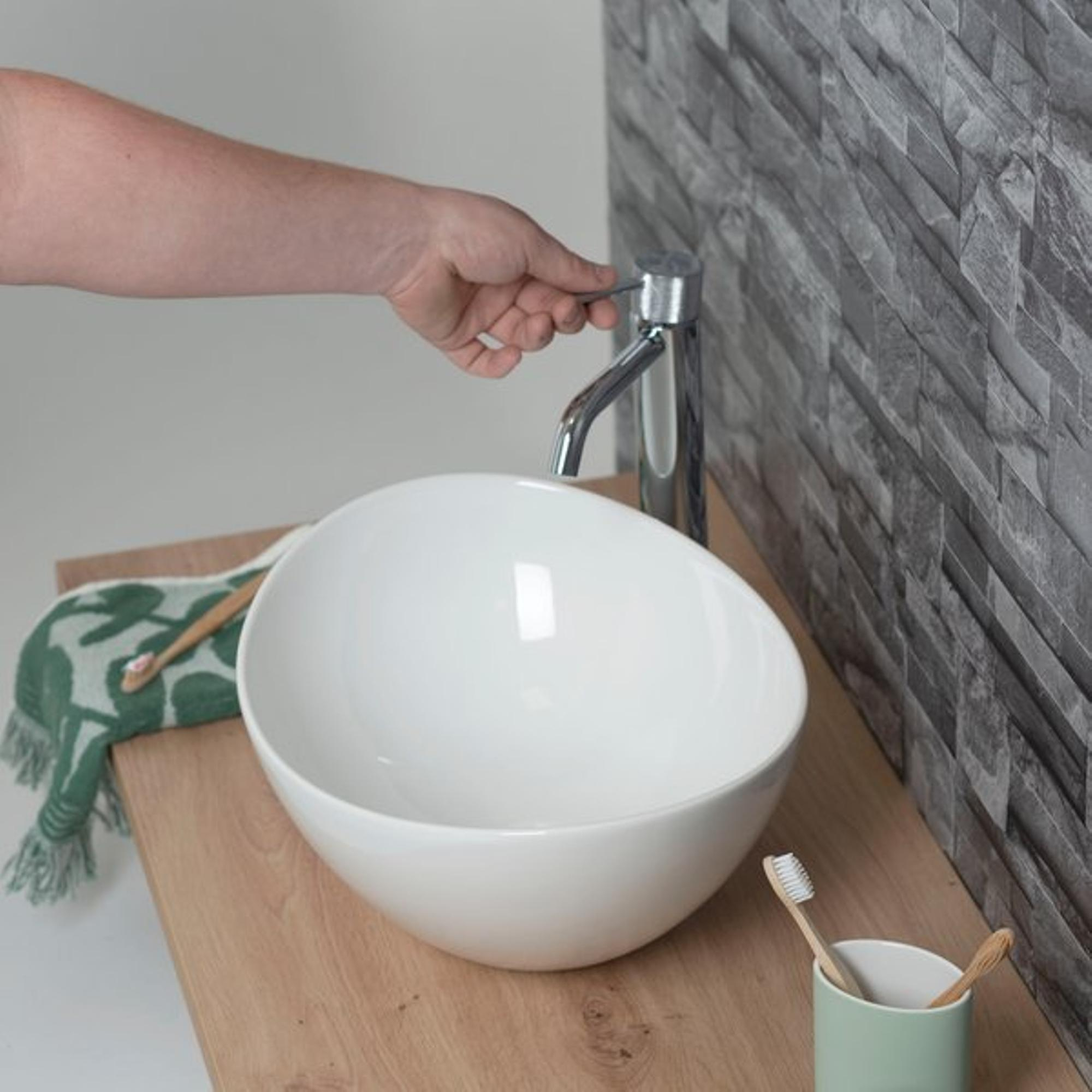 En tant que vasque à poser, cette vasque en céramique est conçue pour une installation relativement simple sur un plan de toilette ou un meuble vasque plat. Associée à un robinet mitigeur haut ou à un robinet mural, vous créez un espace de lavage ergonomique et confortable. La surface lisse en céramique résiste au calcaire et aux salissures quotidiennes, de sorte qu’un nettoyage avec un détergent doux suffit généralement. Grâce à sa hauteur pratique de 18,2 cm, la vasque est agréable à utiliser et limite les éclaboussures d’eau sur le meuble de salle de bains, contribuant ainsi à une pièce propre et soignée.