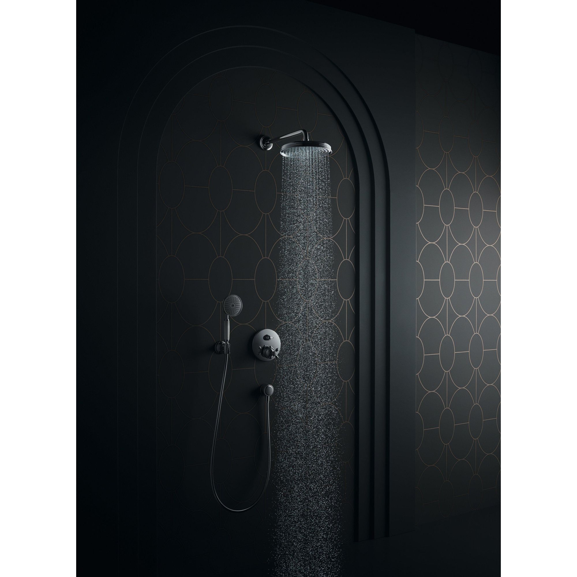 Le chrome brillant, combiné au design rond, s’intègre parfaitement dans un style de salle de bains classique ou nostalgique, tout en paraissant chic et intemporel dans un environnement moderne. L’enveloppe métallique offre une apparence solide et haut de gamme et procure une prise en main ferme, ce qui rend l’utilisation quotidienne particulièrement agréable. Comme la forme est inspirée des robinetteries classiques, vous pouvez parfaitement combiner cette douchette avec d’autres robinets rétro ou industriels autour de la baignoire. Vous créez ainsi facilement un ensemble cohérent dans lequel design, confort et qualité se renforcent mutuellement, sans devoir faire de compromis sur la fonctionnalité moderne.