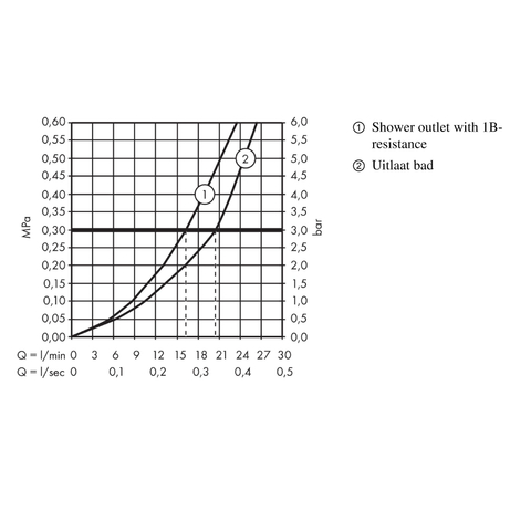 - Débit maximal de 20 litres par minute à 3 bars, remplissage rapide de la baignoire