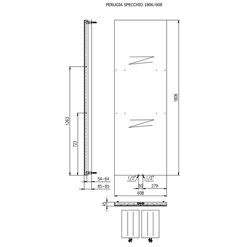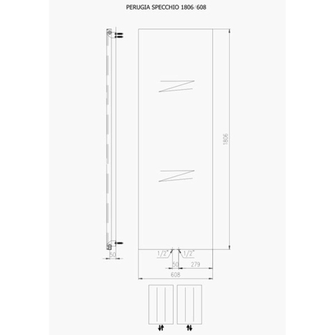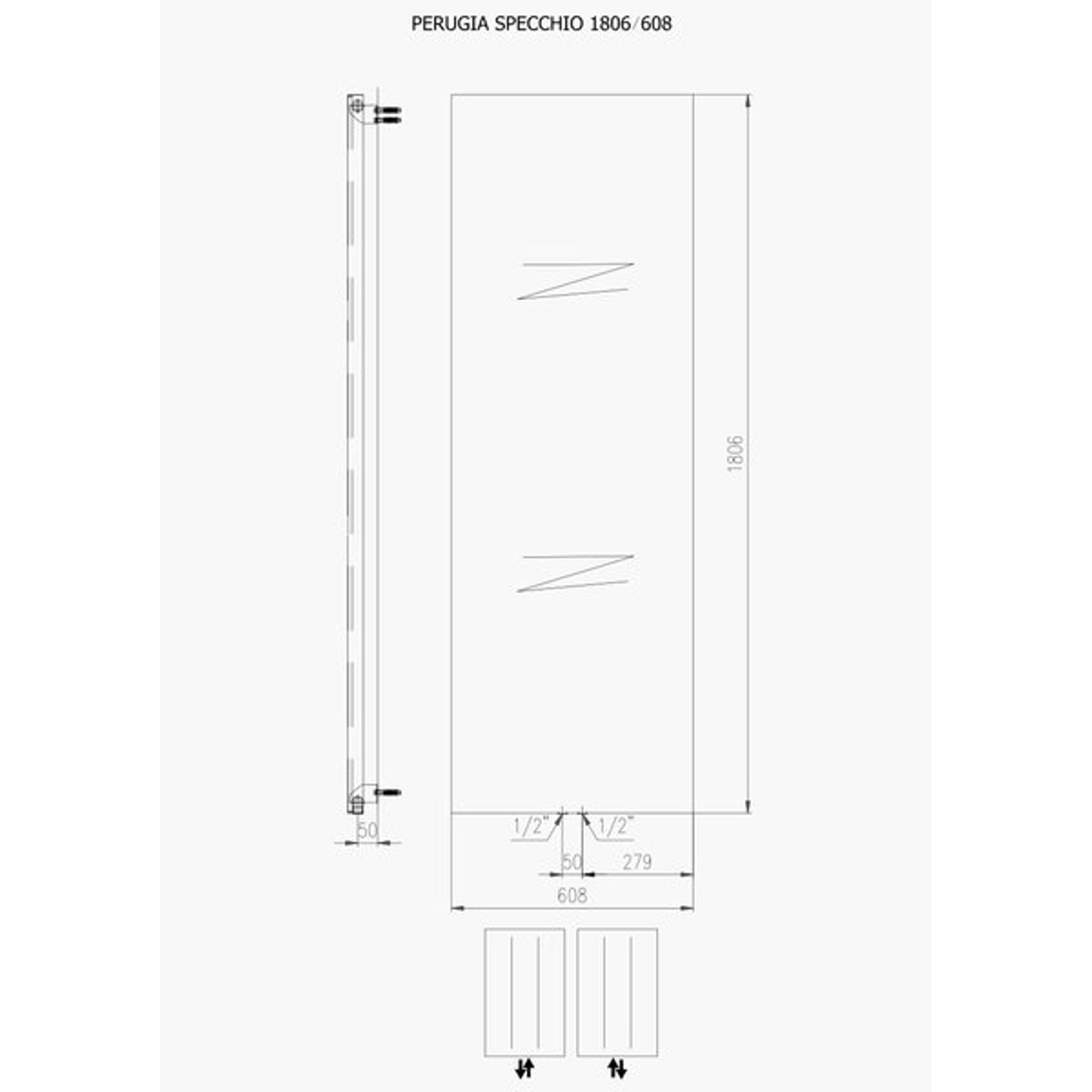 Plieger Perugia Radiateur design vertical avec miroir raccordement central 1806x608mm 749W