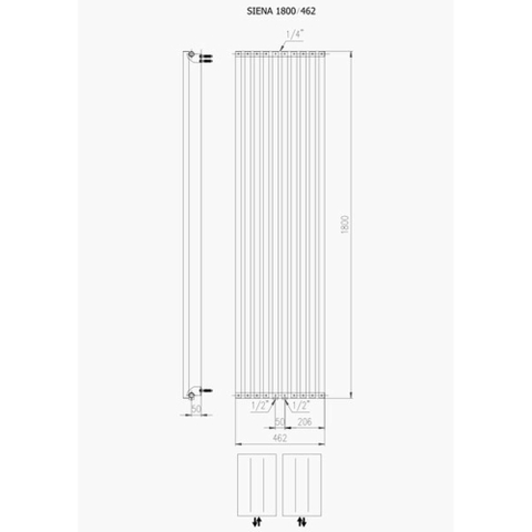 Plieger Siena radiateur décoratif vertical simple 1800x462mm 1094W noir