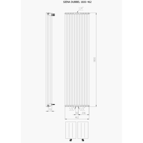 Plieger Siena radiateur design vertical double 1800x462mm 1564W blanc mat