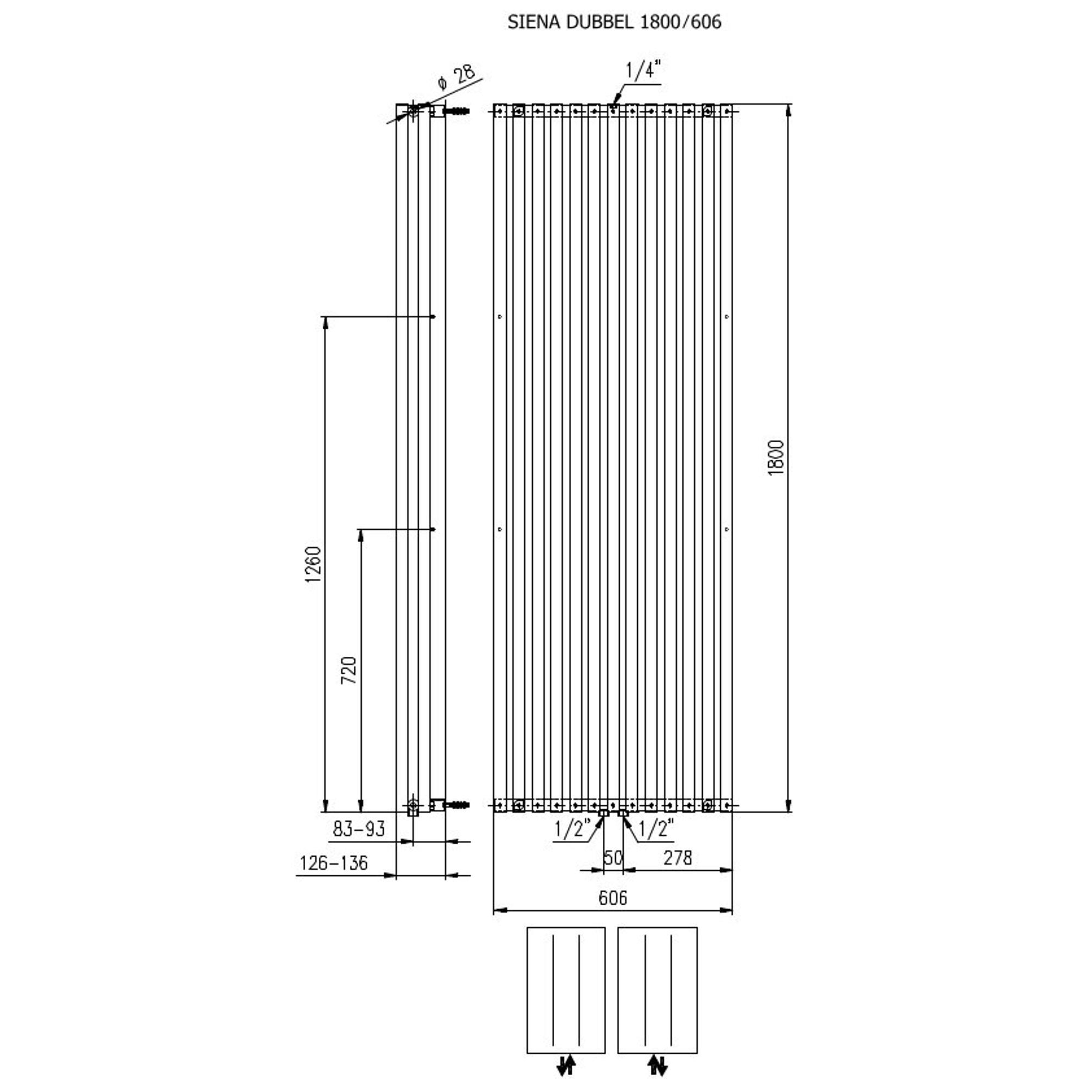 Plieger Siena radiateur design vertical double 1800x606mm 2030W blanc