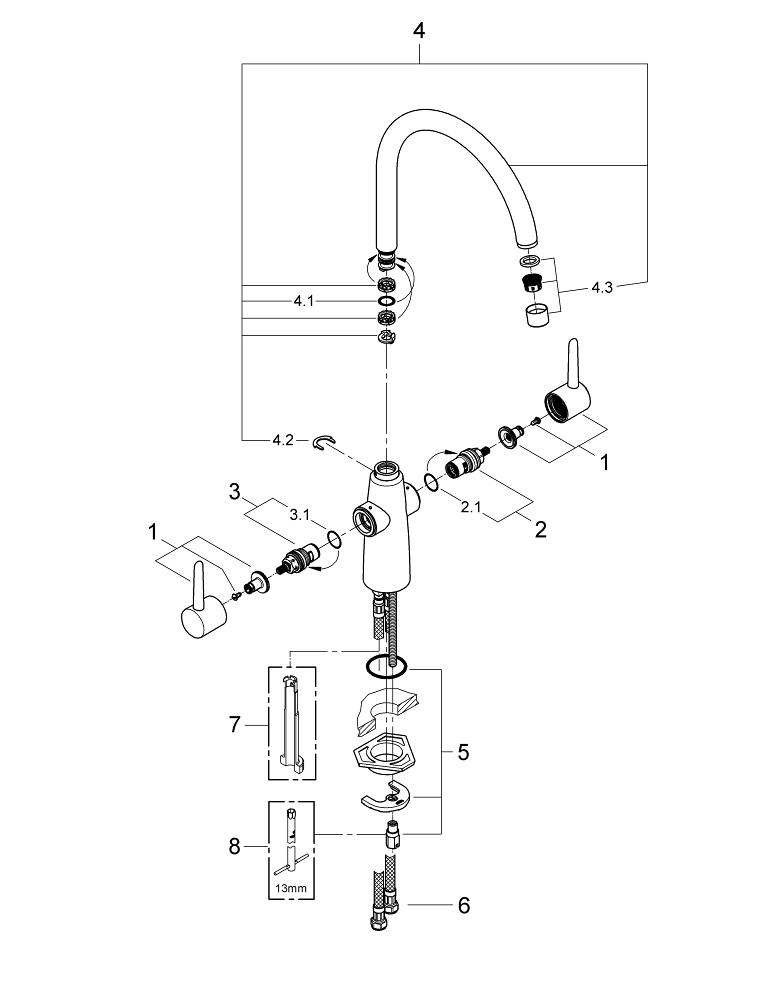 GROHE Ambi Robinet de cuisine avec bec haut chrome