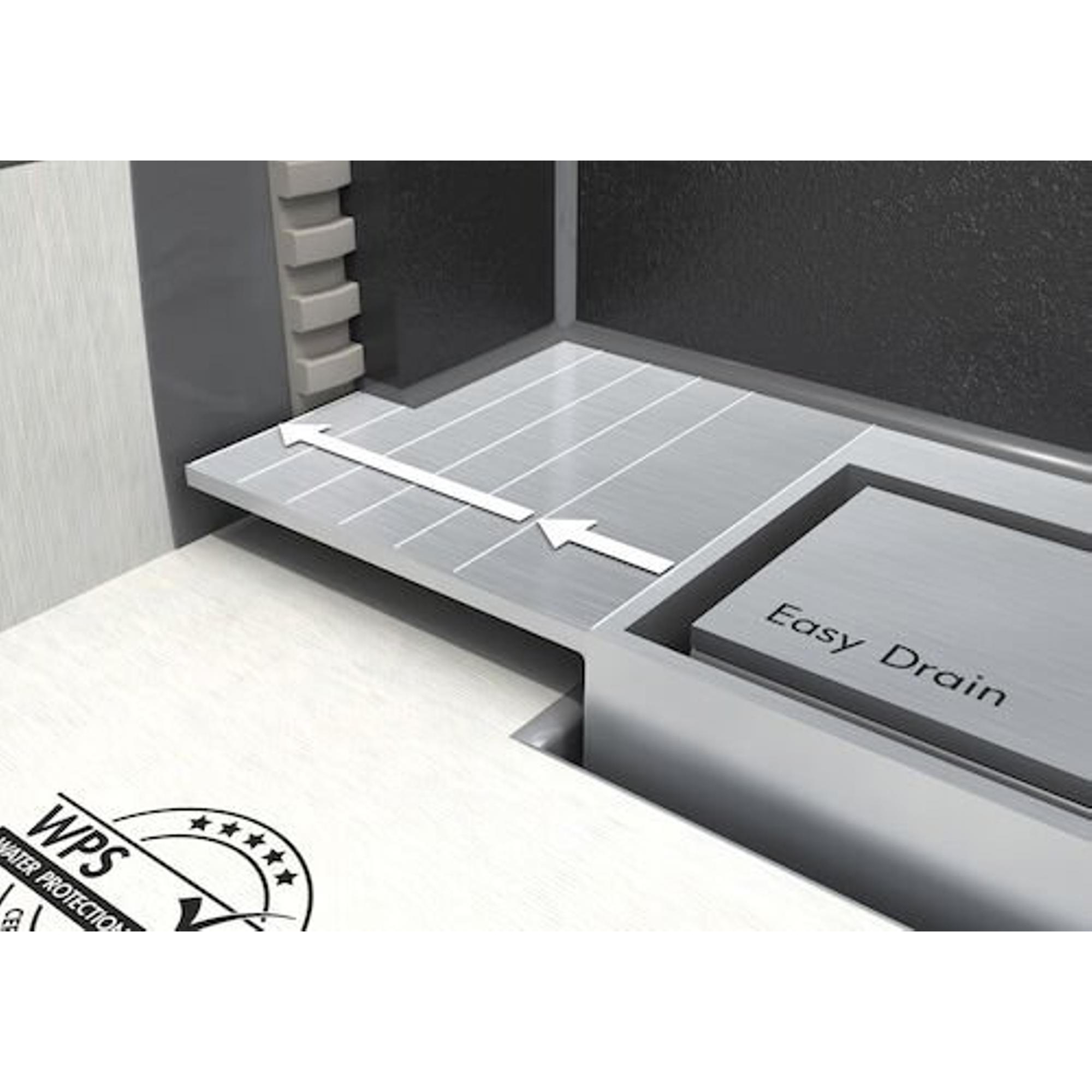 Le caniveau est réalisé en acier inoxydable, un matériau réputé pour sa robustesse, sa résistance à la corrosion et sa longue durée de vie dans les pièces humides. L’inox résiste bien aux produits de nettoyage et à un usage quotidien, ce qui vous permet de profiter pendant des années d’un sol de douche sûr et hygiénique. La grille carrelée intégrée évite que des éléments libres ne se déplacent ou ne vibrent. Grâce au point d’évacuation facilement accessible, vous pouvez nettoyer le caniveau périodiquement et éliminer facilement cheveux et résidus de savon. Cela rend ce caniveau carrelé particulièrement adapté aux salles de bains très sollicitées, comme les salles de bains familiales ou les suites de luxe pour invités.