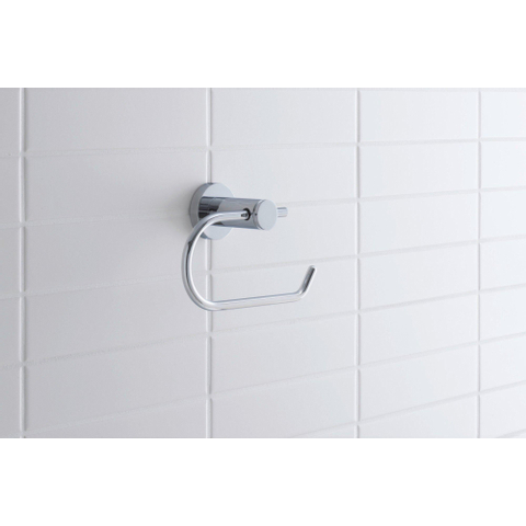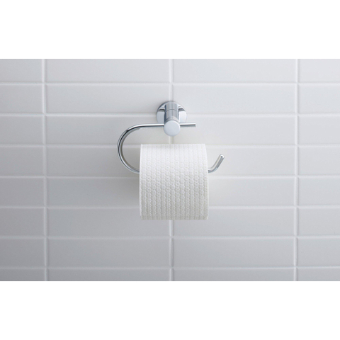 La forme a été volontairement maintenue simple, avec des lignes tubulaires arrondies et un modèle ouvert pour un seul rouleau. Le mur conserve ainsi un aspect calme et l’attention reste portée sur l’aménagement global de vos toilettes ou de votre salle de bains. La finition chromée haute brillance réfléchit la lumière, ce qui donne à la pièce un aspect plus lumineux et plus frais. Comme la fixation est soigneusement dissimulée, vous ne voyez ni vis ni pinces et un effet épuré, presque flottant, est créé sur le mur. Cela rend cet accessoire non seulement idéal pour les salles de bains neuves ou design, mais également très adapté comme mise à niveau discrète dans un espace existant.