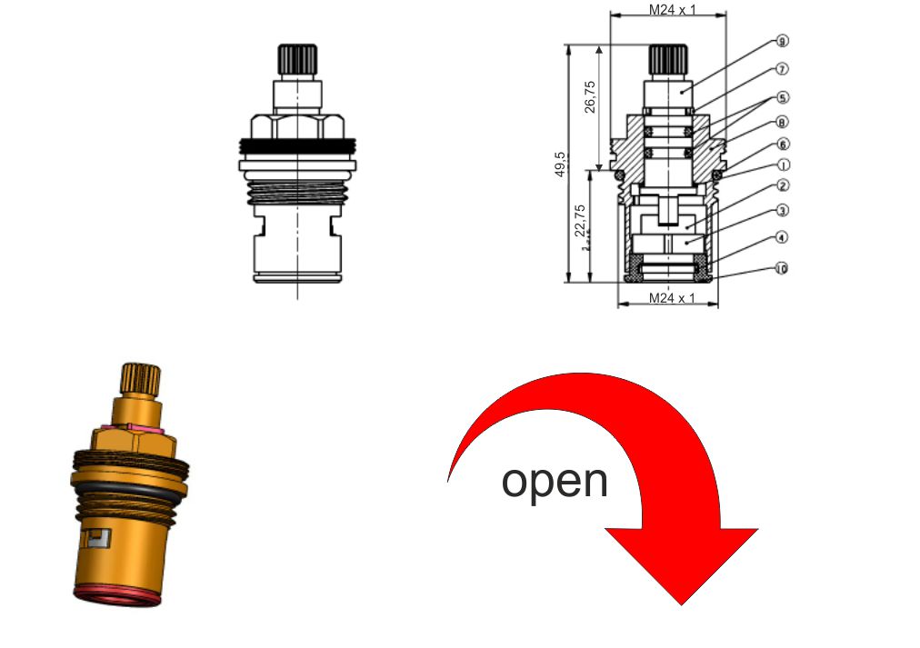 - Convient pour remplacer un mécanisme interne usé ou fuyard sans devoir renouveler entièrement le robinet.