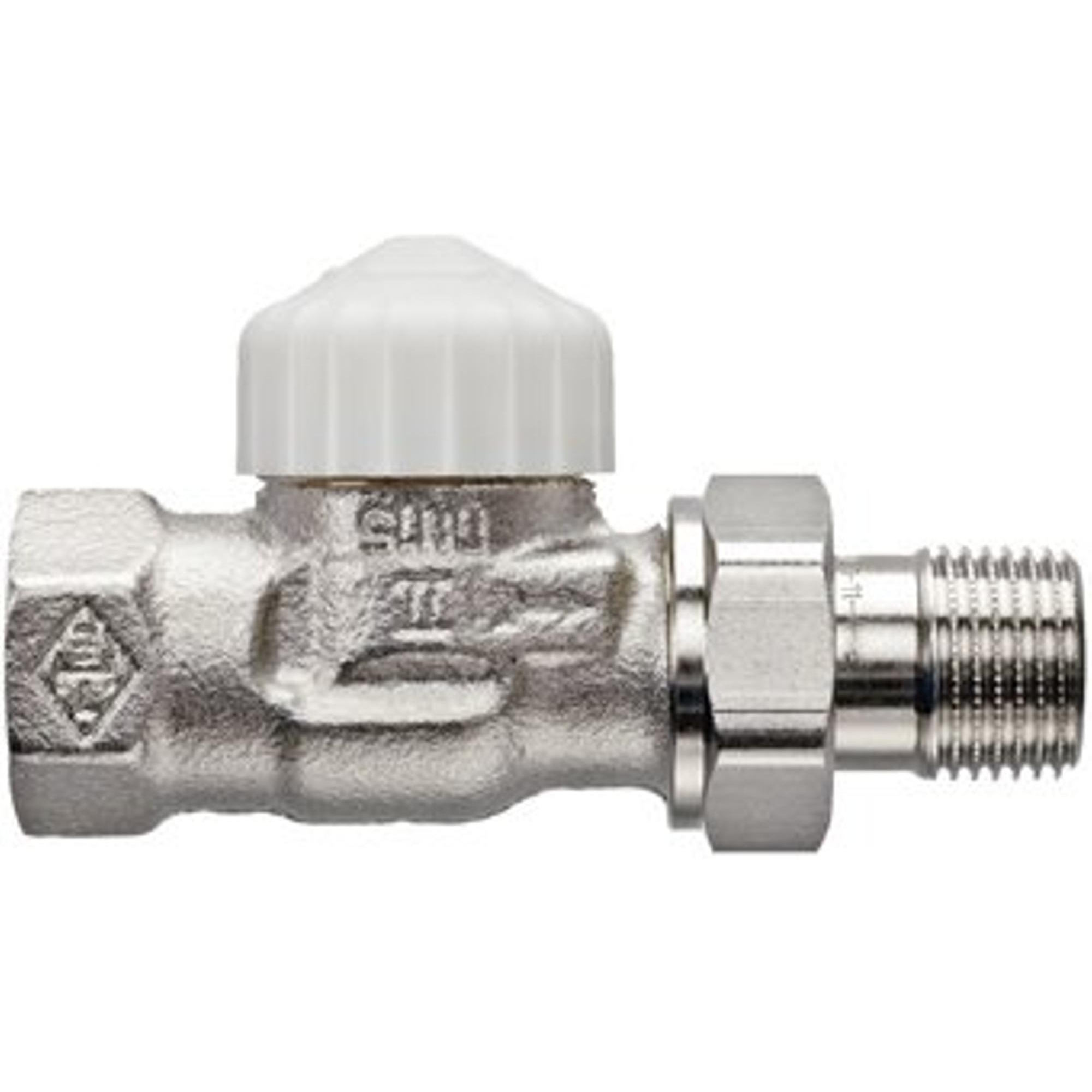 - Robinet d'arrêt de radiateur droit, idéal lorsque la tuyauterie arrive en ligne droite vers le radiateur.