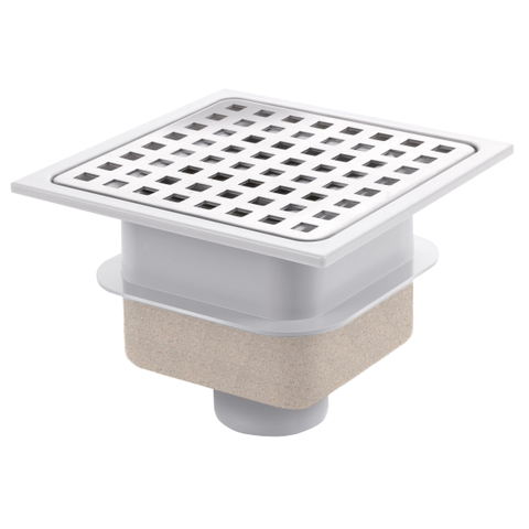 - Siphon de sol compact de 15x15 cm, idéal pour les douches et les petites zones humides