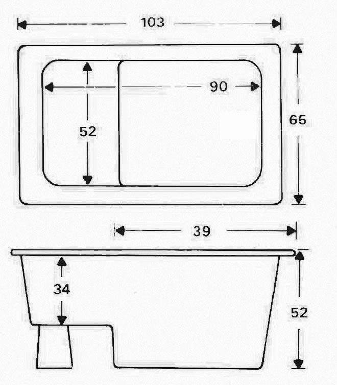 - Bain assis compact de 103x65x52 cm, idéal pour les petites salles de bains ou comme solution de baignoire supplémentaire.