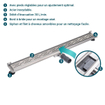 L'apparence stylée du Caniveau de douche Saniclass en fait un point focal dans chaque salle de bain. Le design subtil et la flasque murale assurent une finition élégante qui est à la fois fonctionnelle et esthétiquement attrayante. Que vous ayez un style de salle de bain minimaliste ou plus luxueux, ce caniveau de douche s'adapte parfaitement à divers designs d'intérieur et ajoute une touche de classe à votre expérience quotidienne de douche.