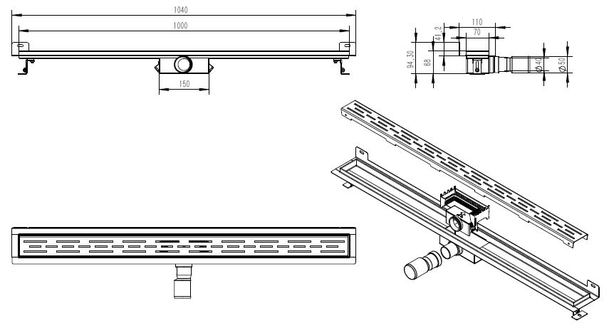 En plus de sa valeur esthétique, ce caniveau de douche est également très fonctionnel. Avec une sortie latérale, il offre un drainage efficace de l'eau, gardant votre sol de douche sec et sûr. La construction peu profonde facilite l'installation et l'entretien, tandis que le matériau inox durable assure une longue durée de vie sans soucis.